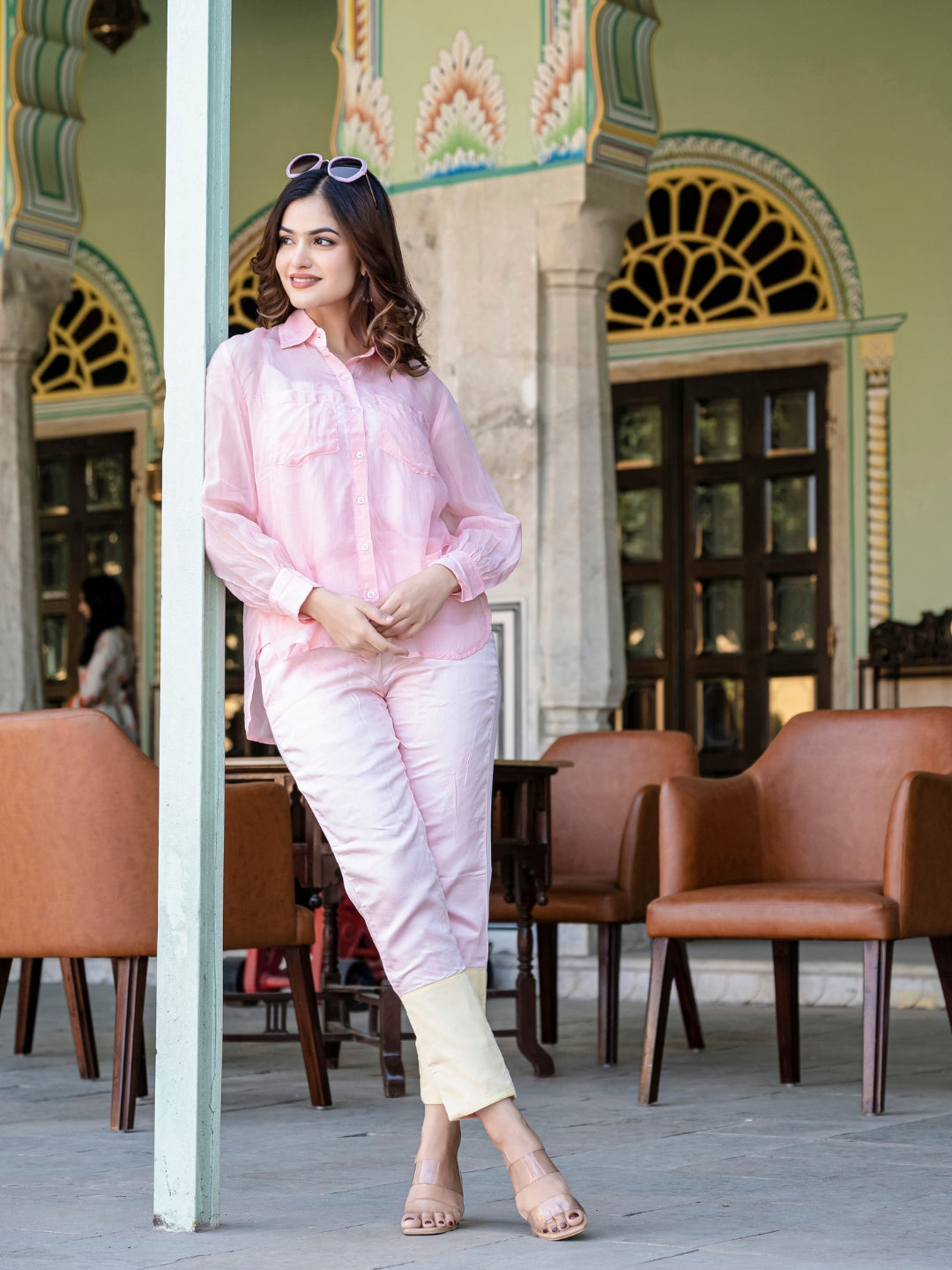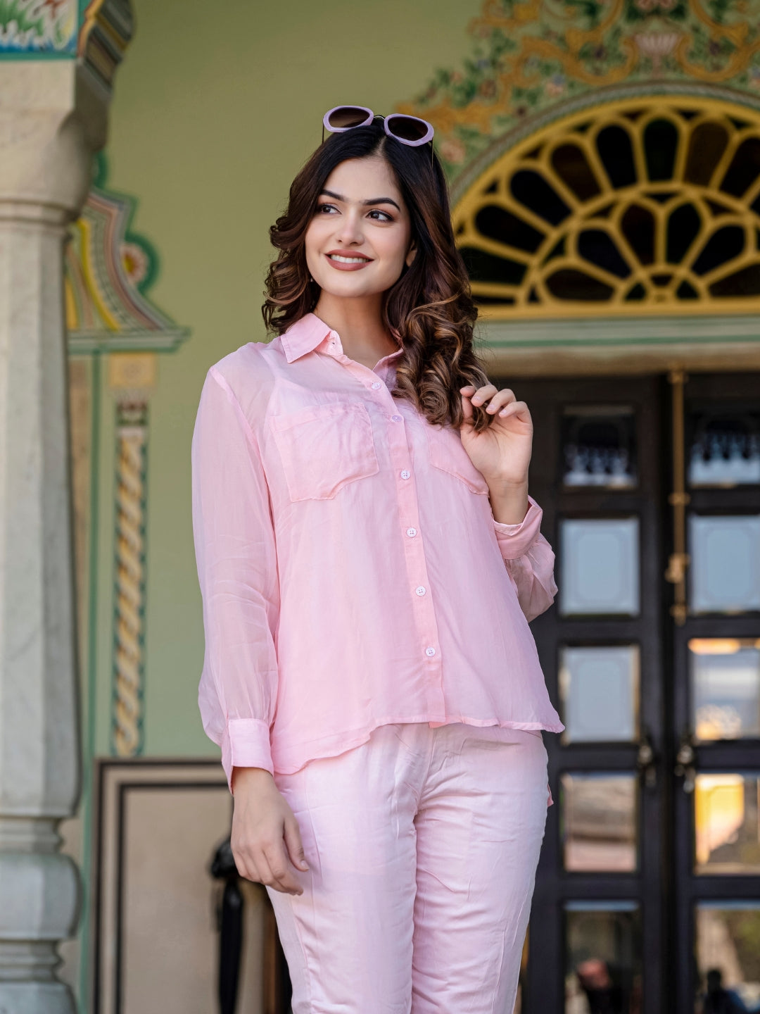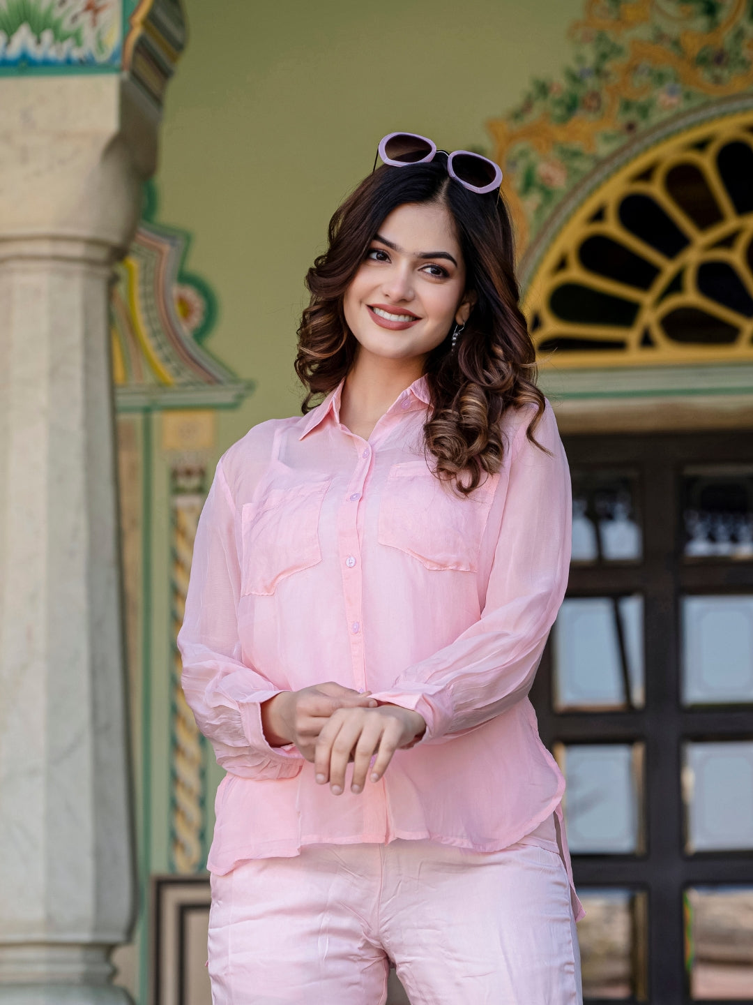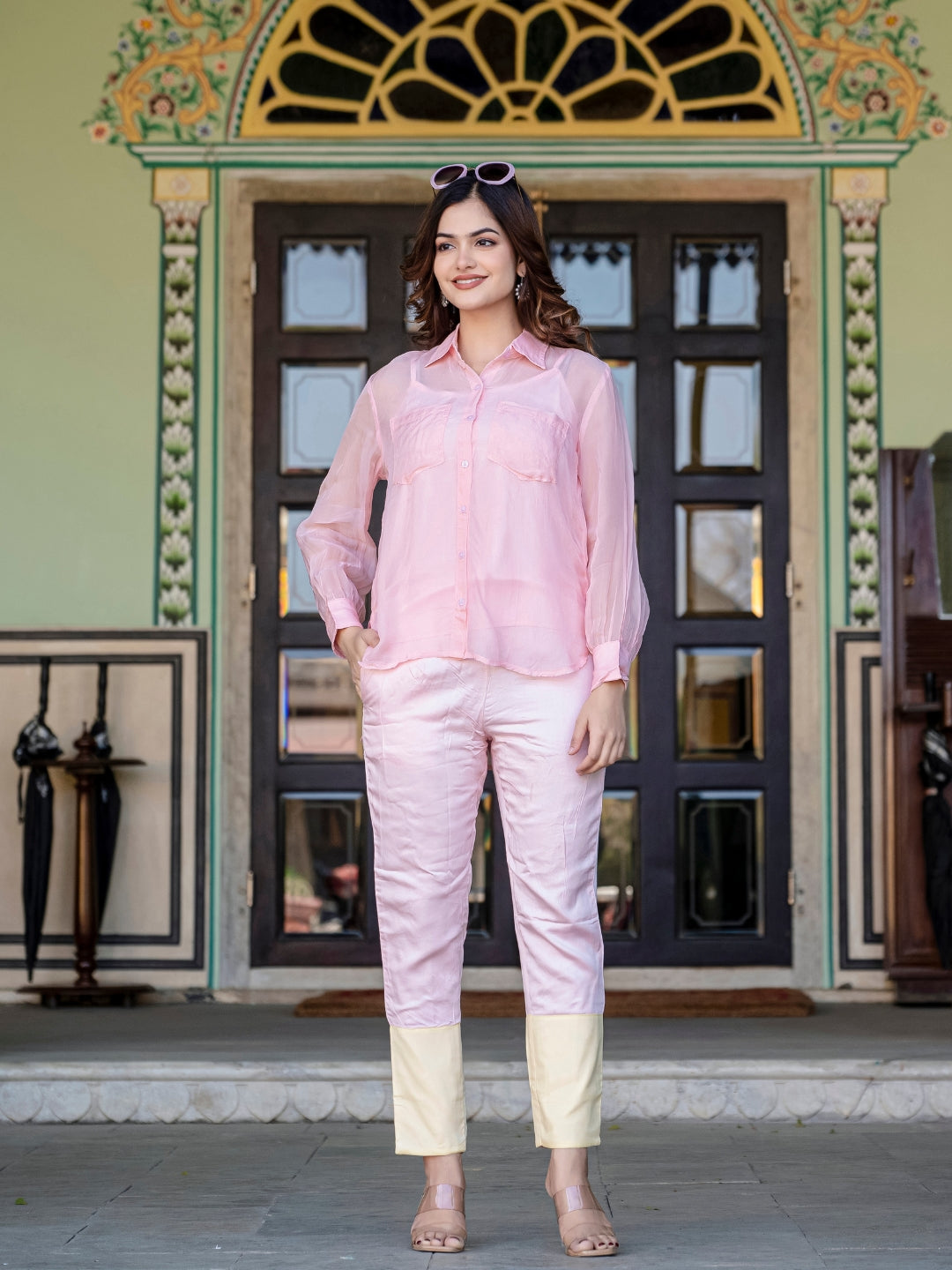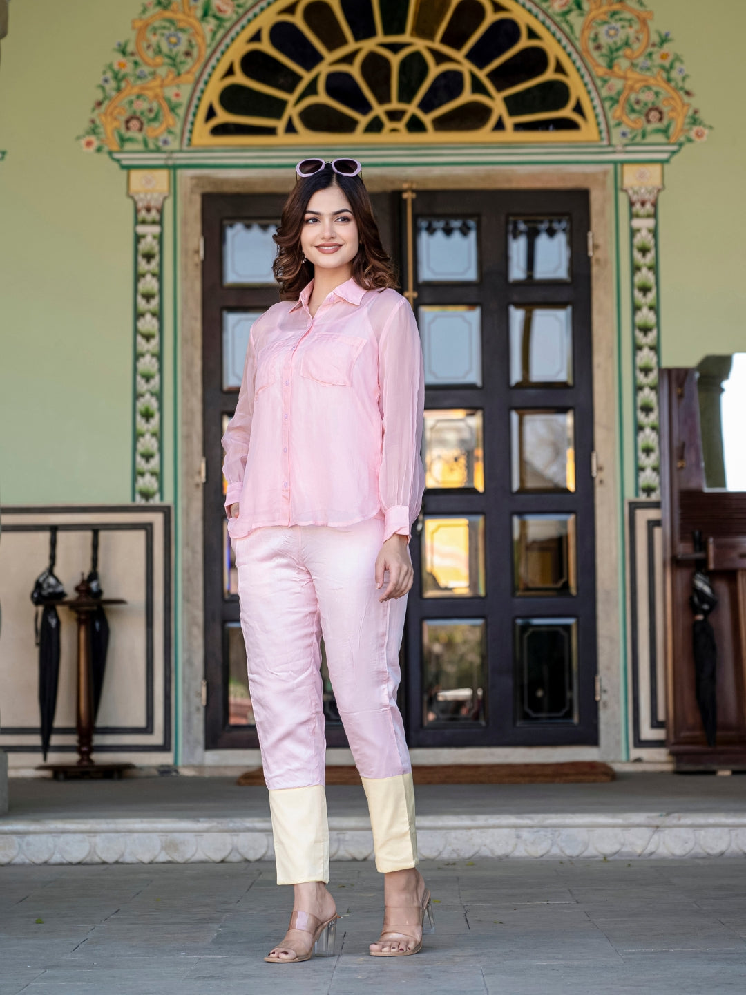 About Product - The Baby Pink And Yellow Organza 3 Piece Co-Ord Set will effortlessly complement a wide range of your casual outings. Available in XS to XL sizes. The perfect outfit you can ever find on the Internet.