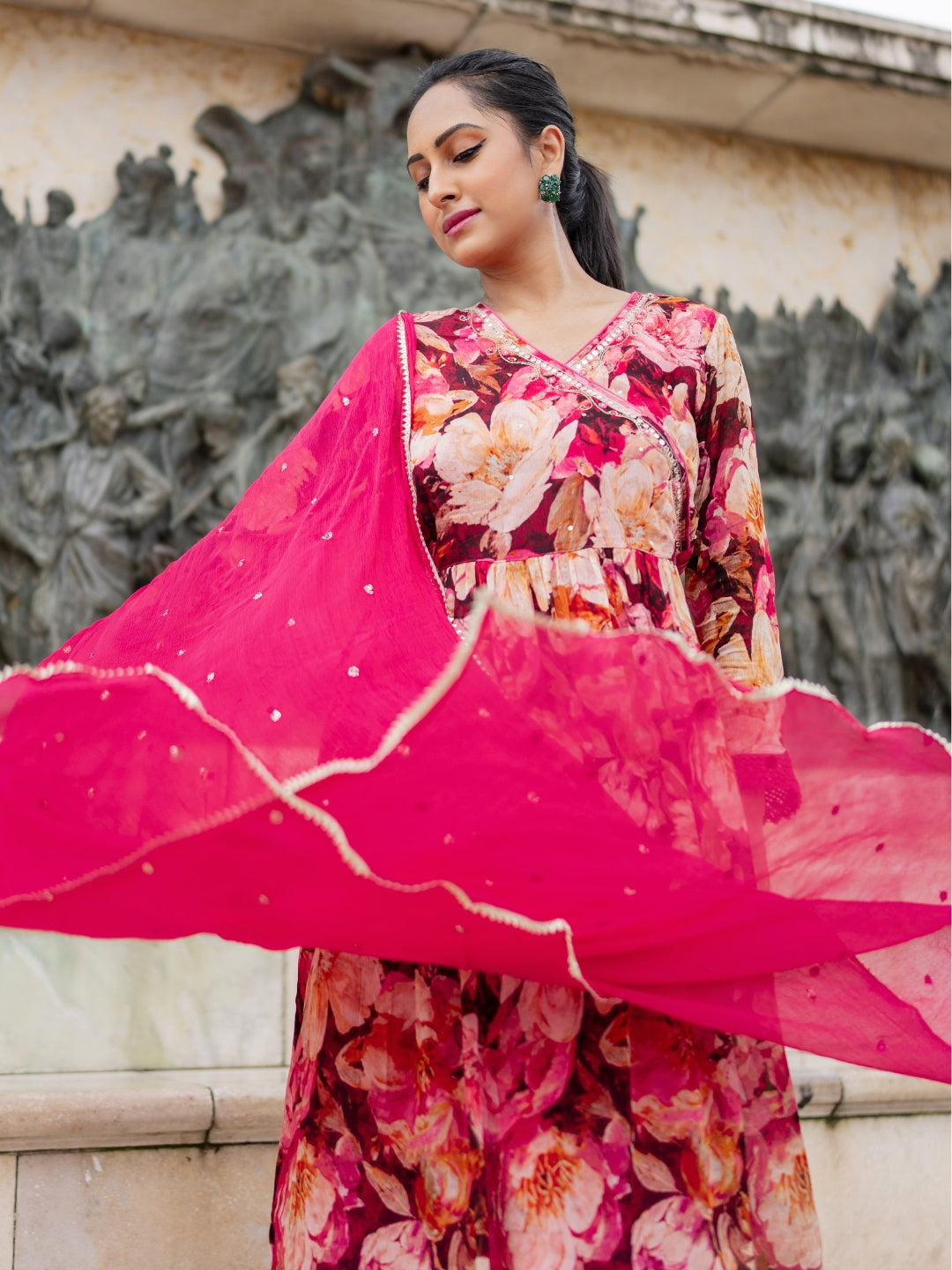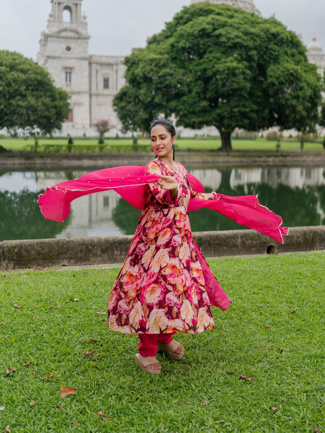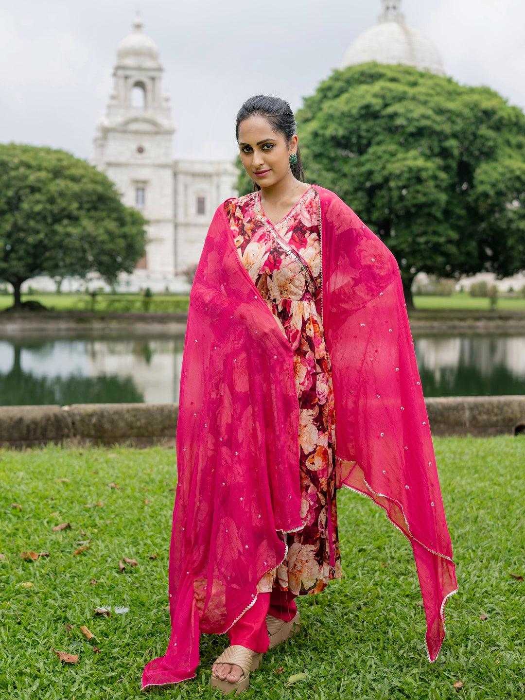 About Product - The Red 3 Pc Chinnon (Kurta & Dupatta) & Shantoon (Bottom) Suit Set will effortlessly complement a wide range of your casual outings. Available in M to XXL sizes. The perfect outfit you can ever find on the Internet.