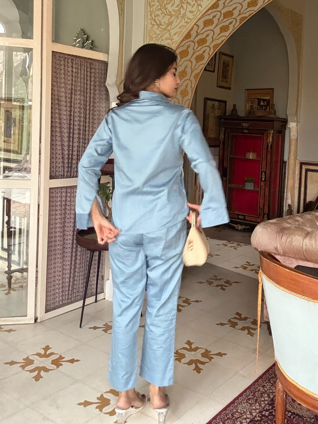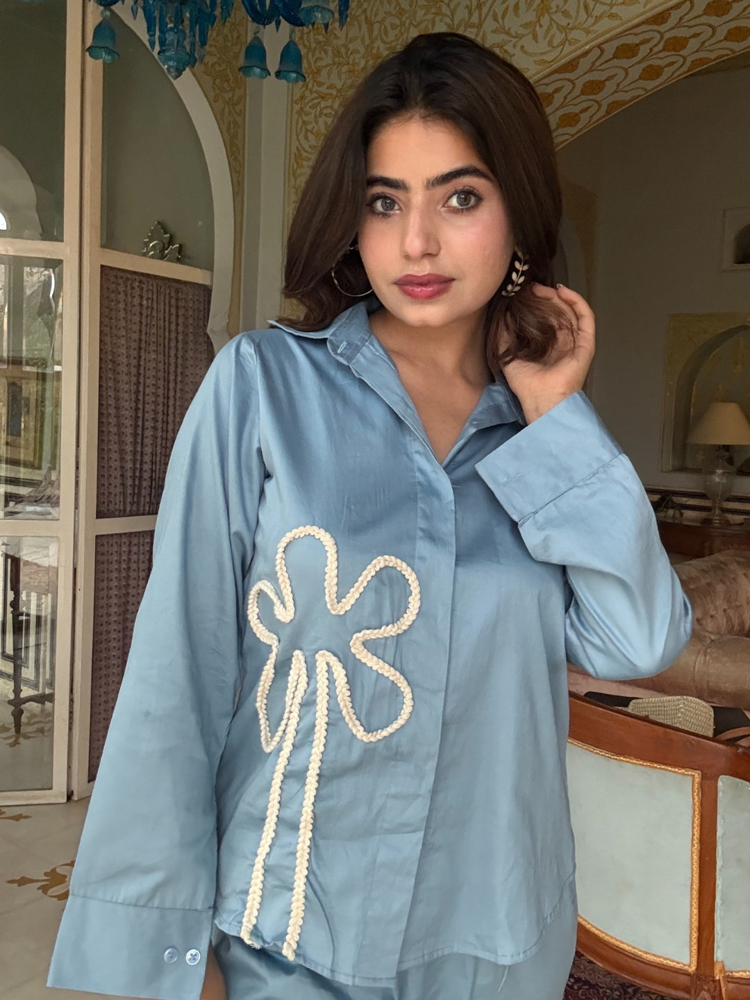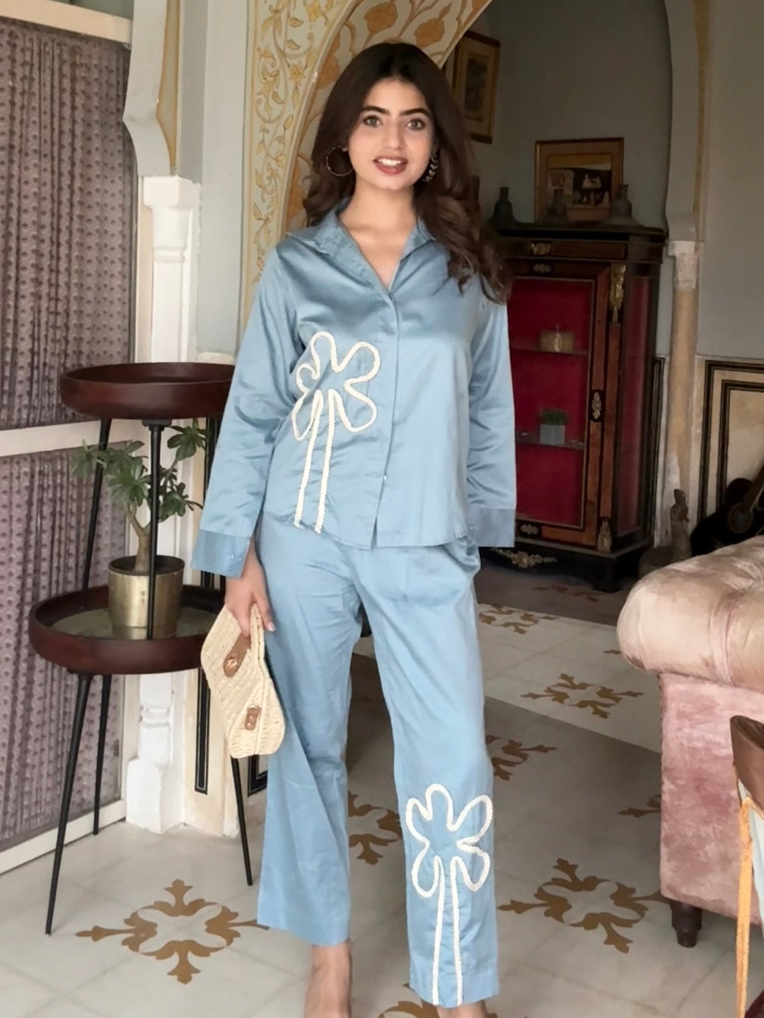 About Product - The Blue Italian Cotton Co-ord Set With Lace detaling will effortlessly complement a wide range of your casual outings. Available in XS to XL sizes. The perfect outfit you can ever find on the Internet.