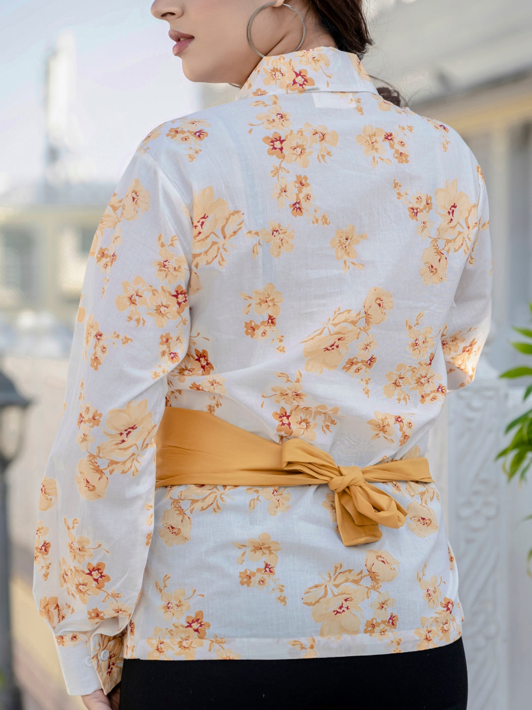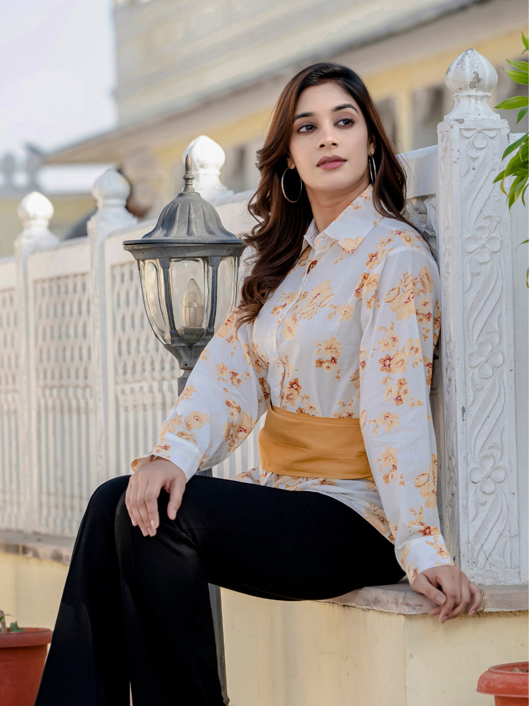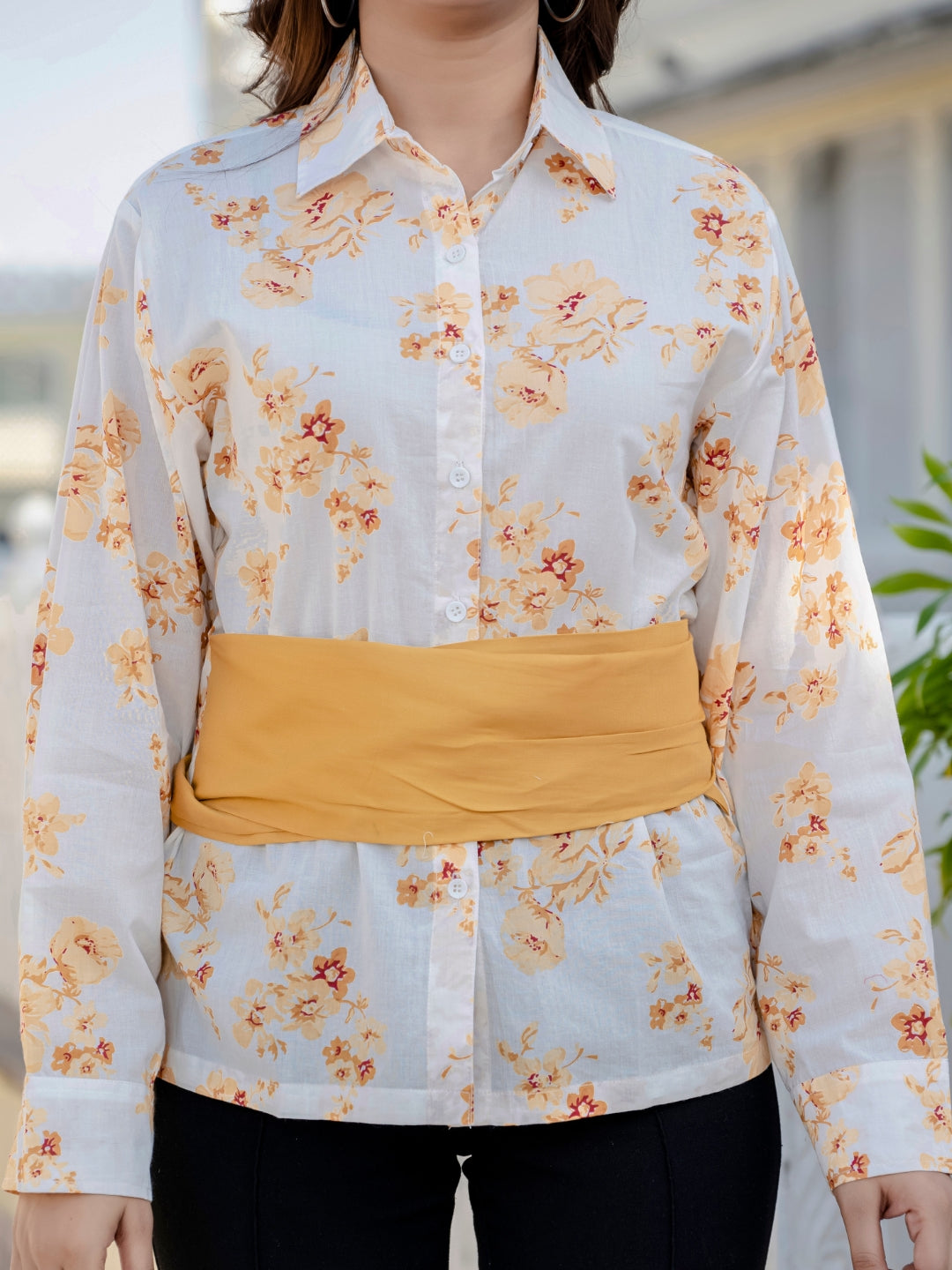 About Product - The Mustard Cotton Floral Shirt With Bow will effortlessly complement a wide range of your casual outings. Available in XS to XL sizes. The perfect outfit you can ever find on the Internet.