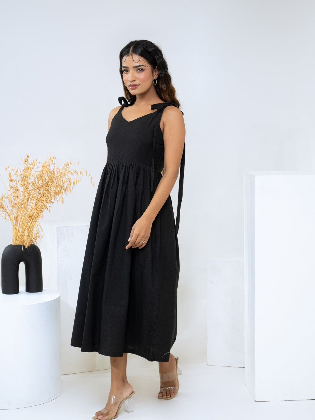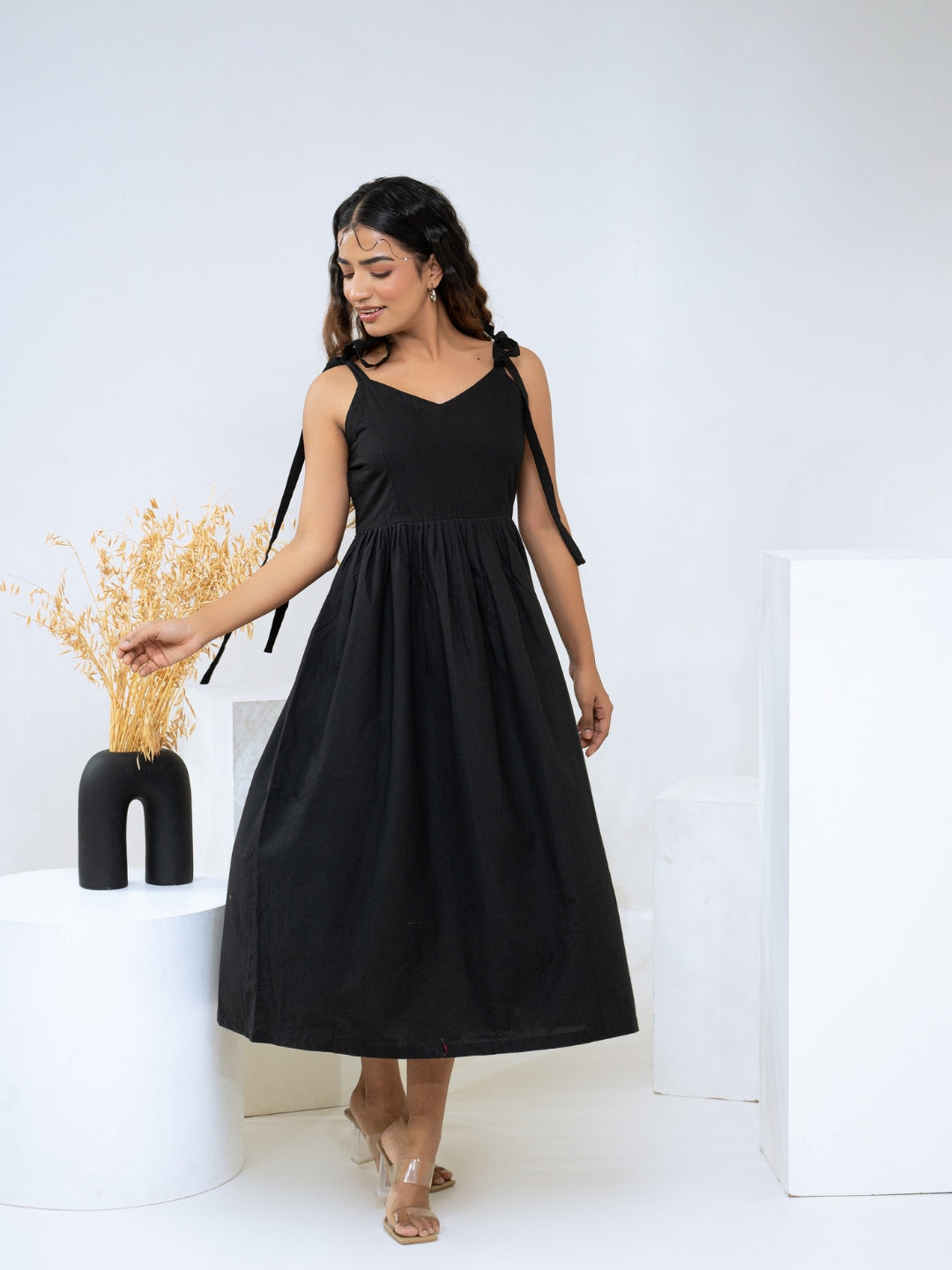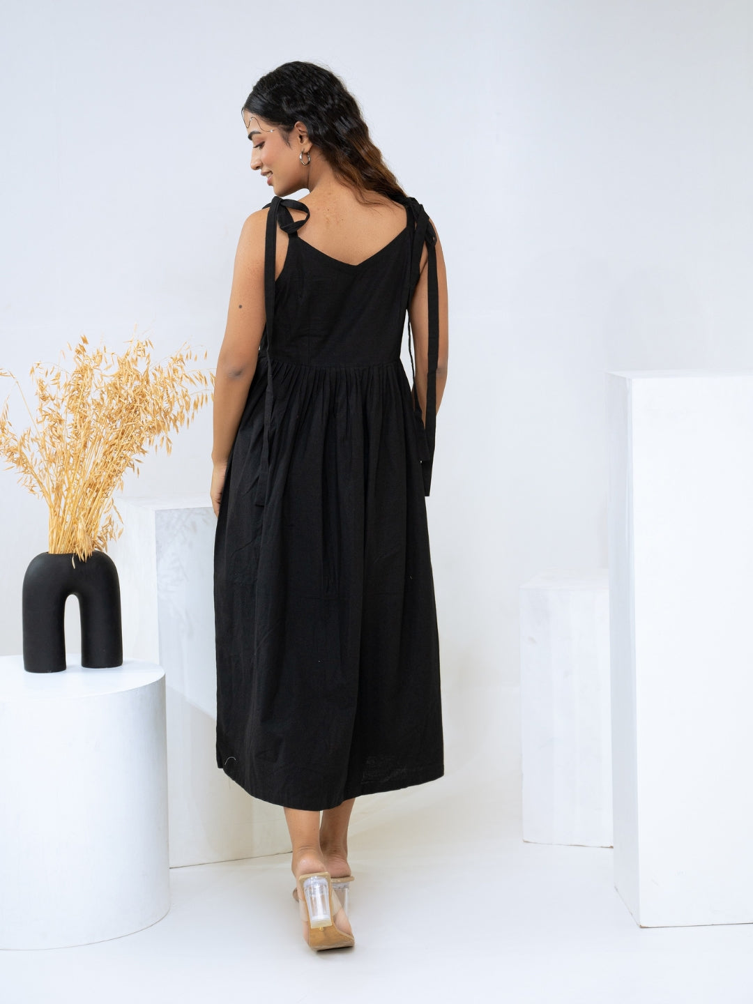 About Product - The Black Cotton Flex Dress will effortlessly complement a wide range of your casual outings. Available in XS to XL sizes. The perfect outfit you can ever find on the Internet.