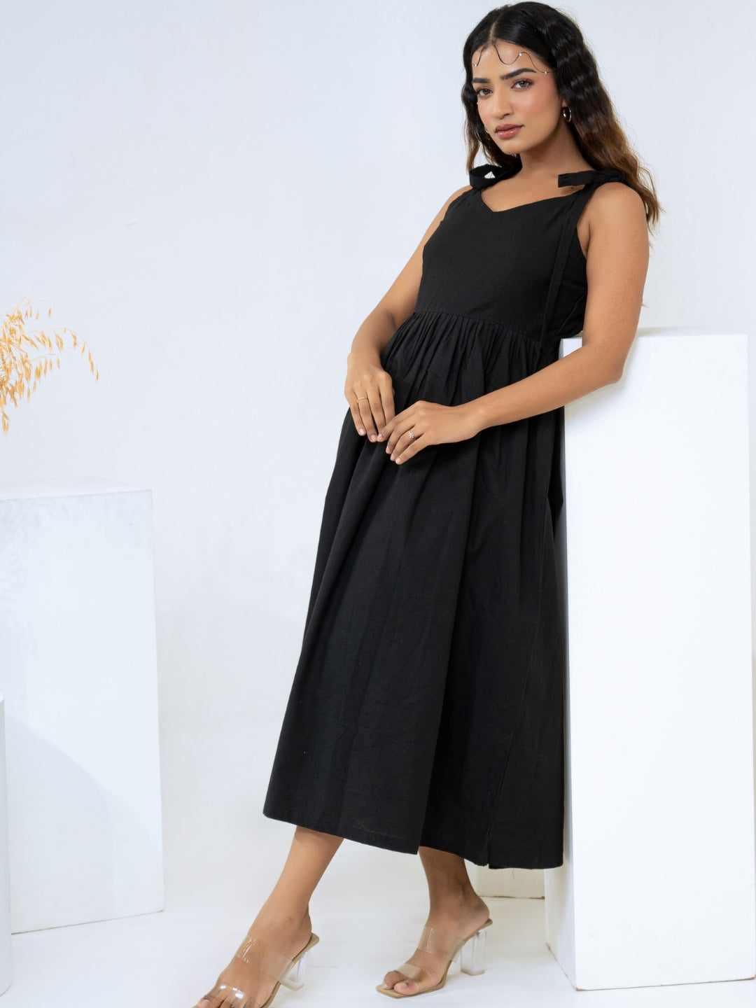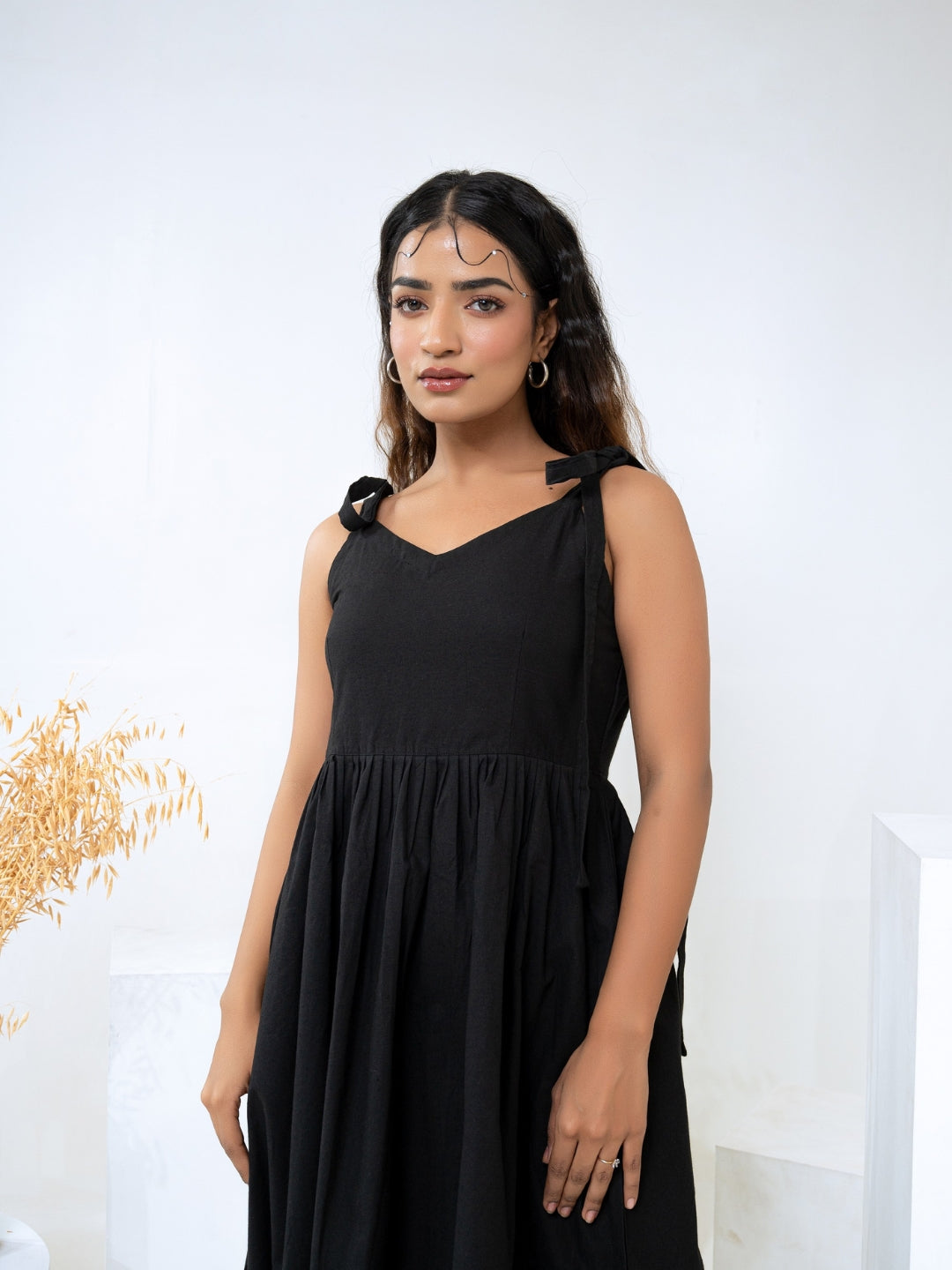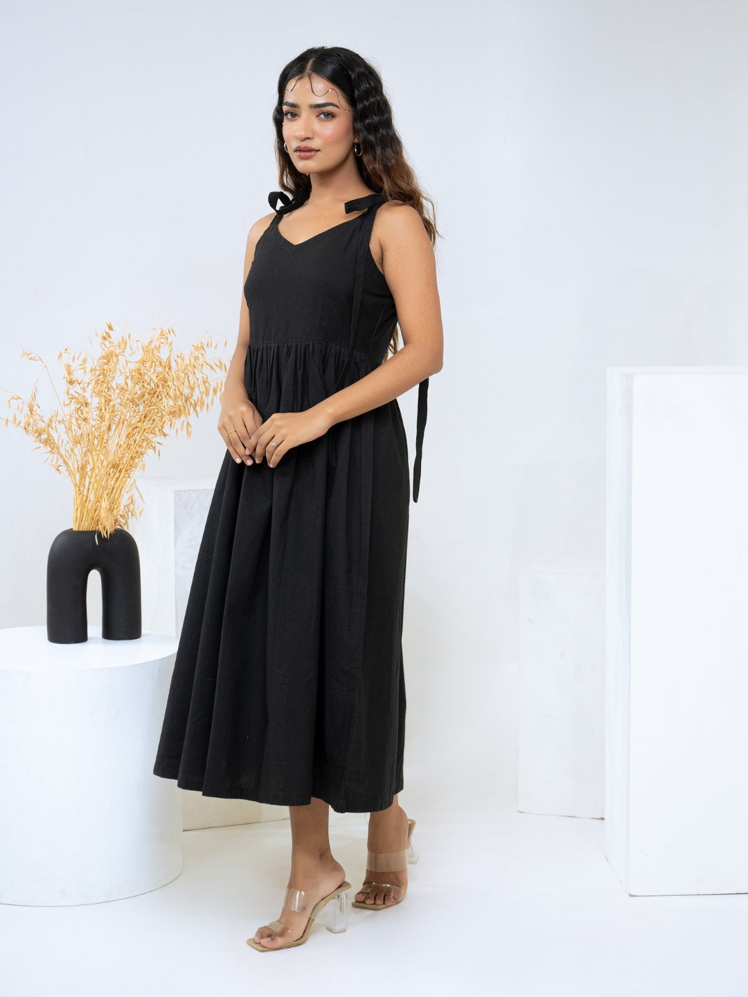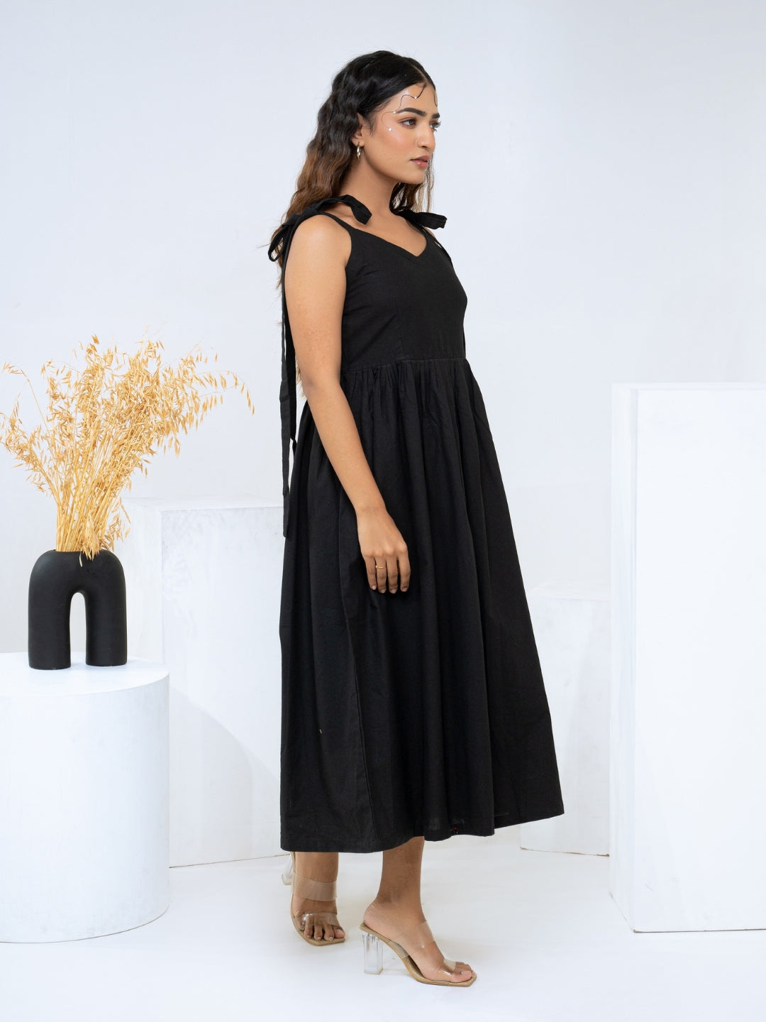 About Product - The Black Cotton Flex Dress will effortlessly complement a wide range of your casual outings. Available in XS to XL sizes. The perfect outfit you can ever find on the Internet.