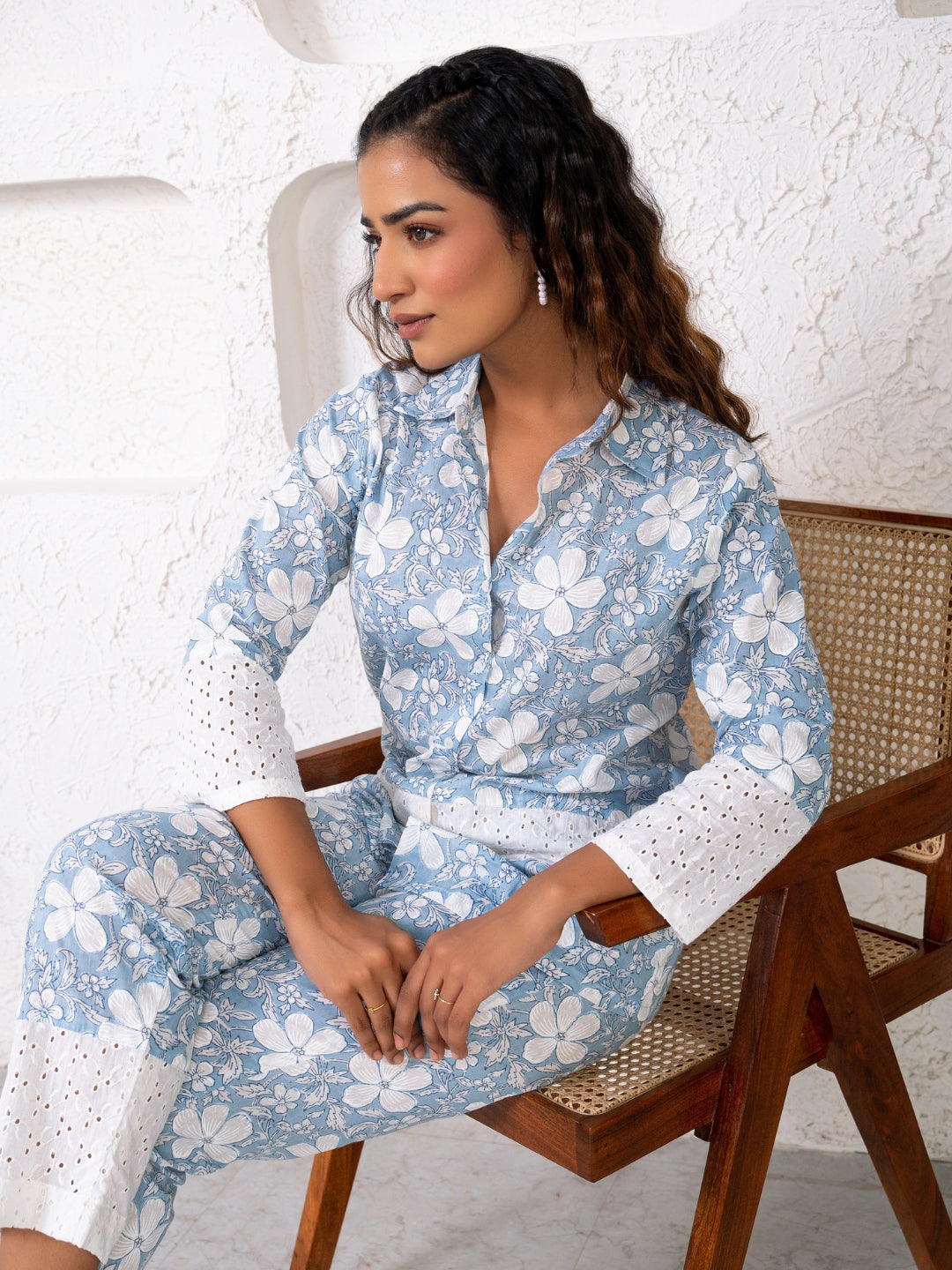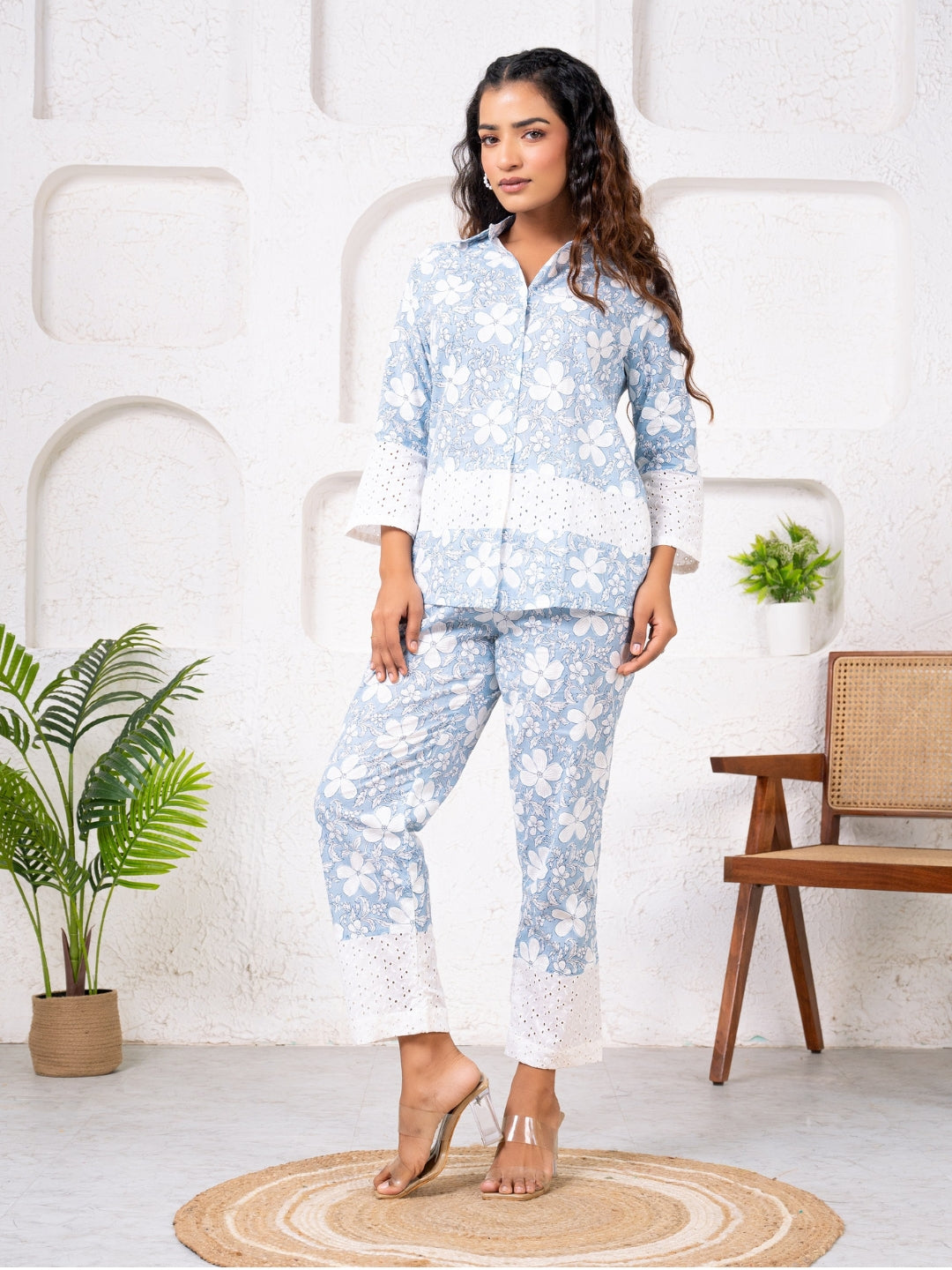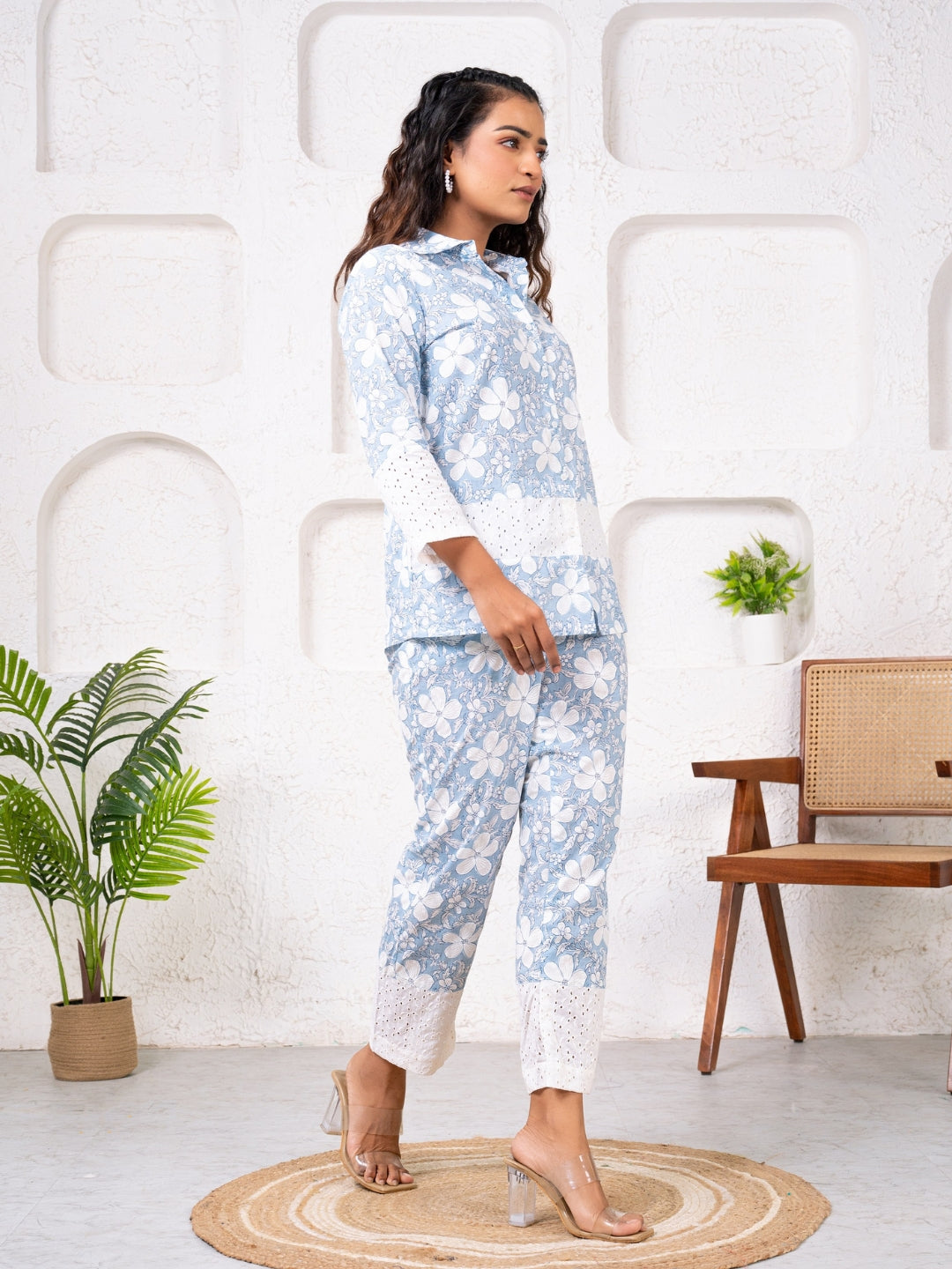 About Product - The Blue Cotton Printed With Shiffli Detailing Co-Ord Set will effortlessly complement a wide range of your casual outings. Available in XS to XL sizes. The perfect outfit you can ever find on the Internet.