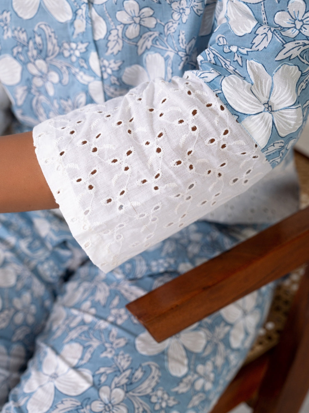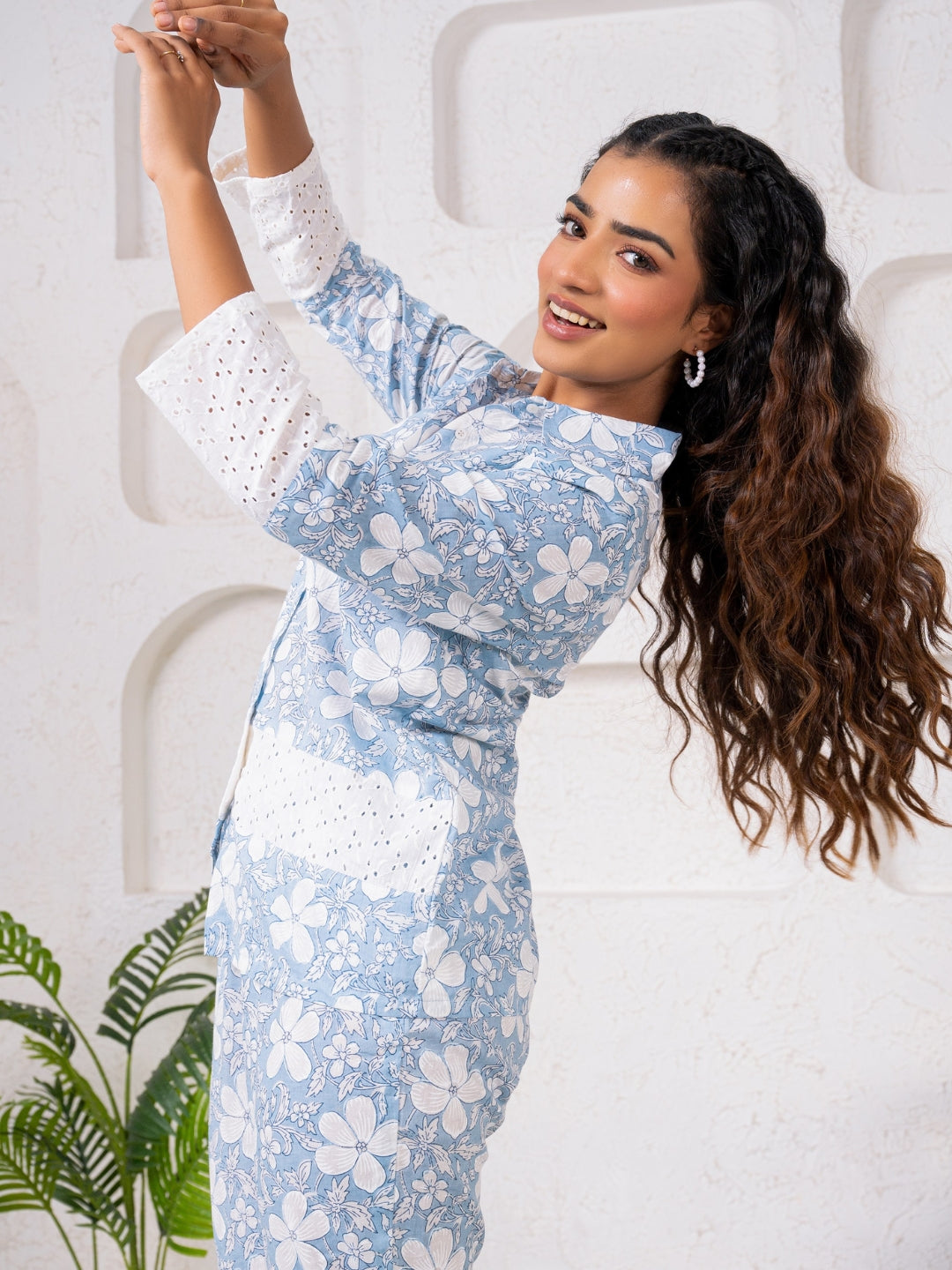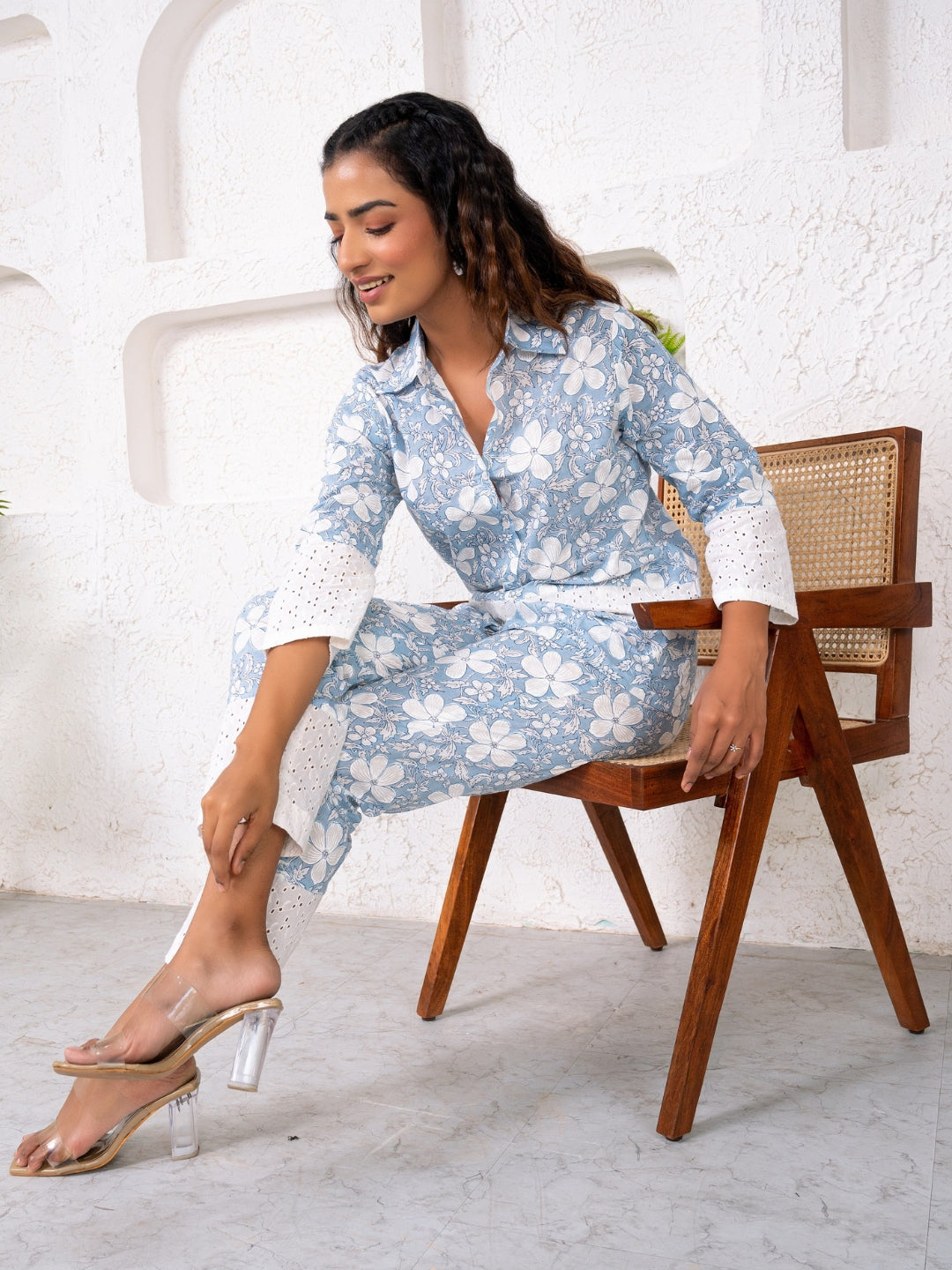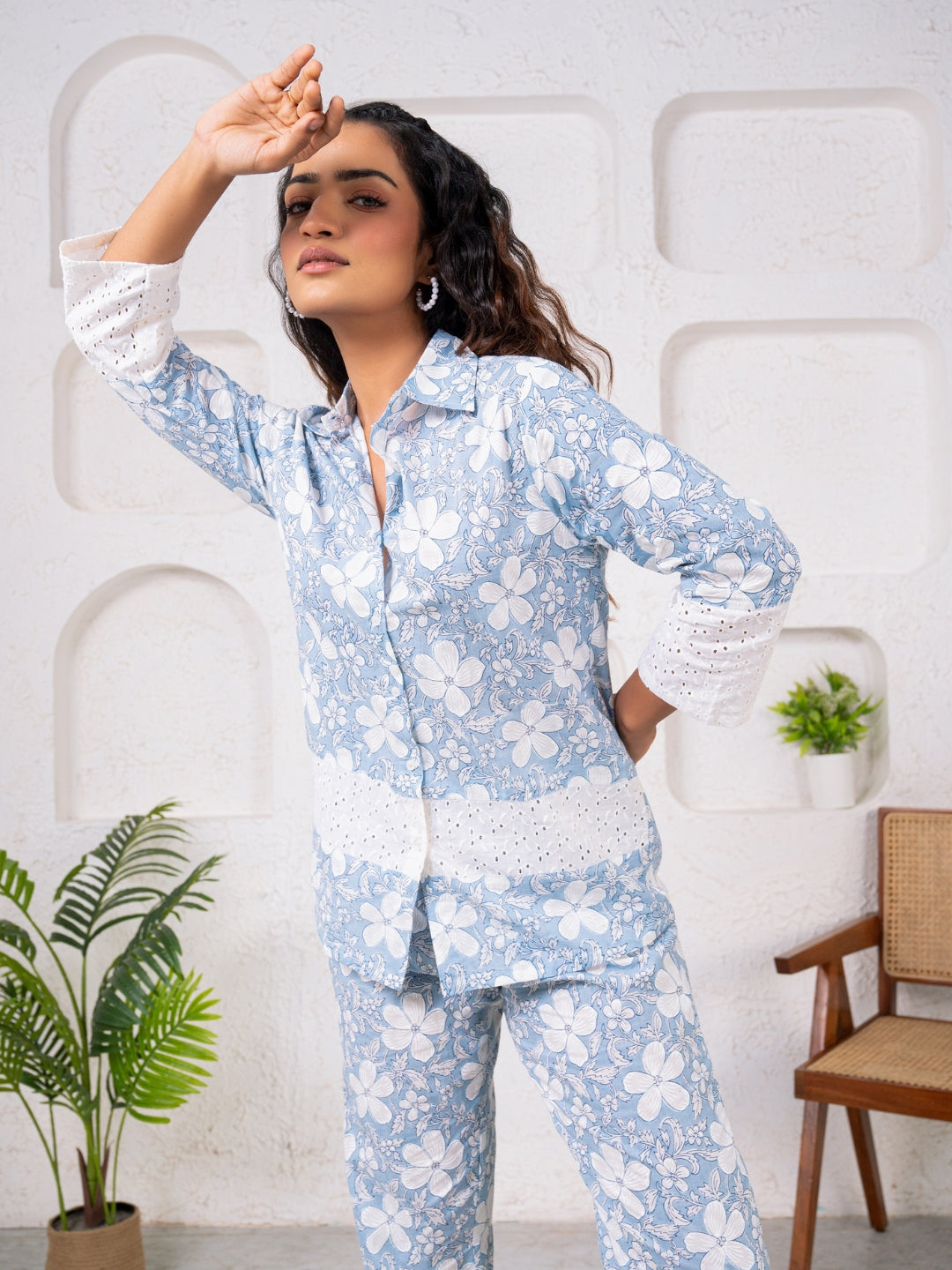 About Product - The Blue Cotton Printed With Shiffli Detailing Co-Ord Set will effortlessly complement a wide range of your casual outings. Available in XS to XL sizes. The perfect outfit you can ever find on the Internet.