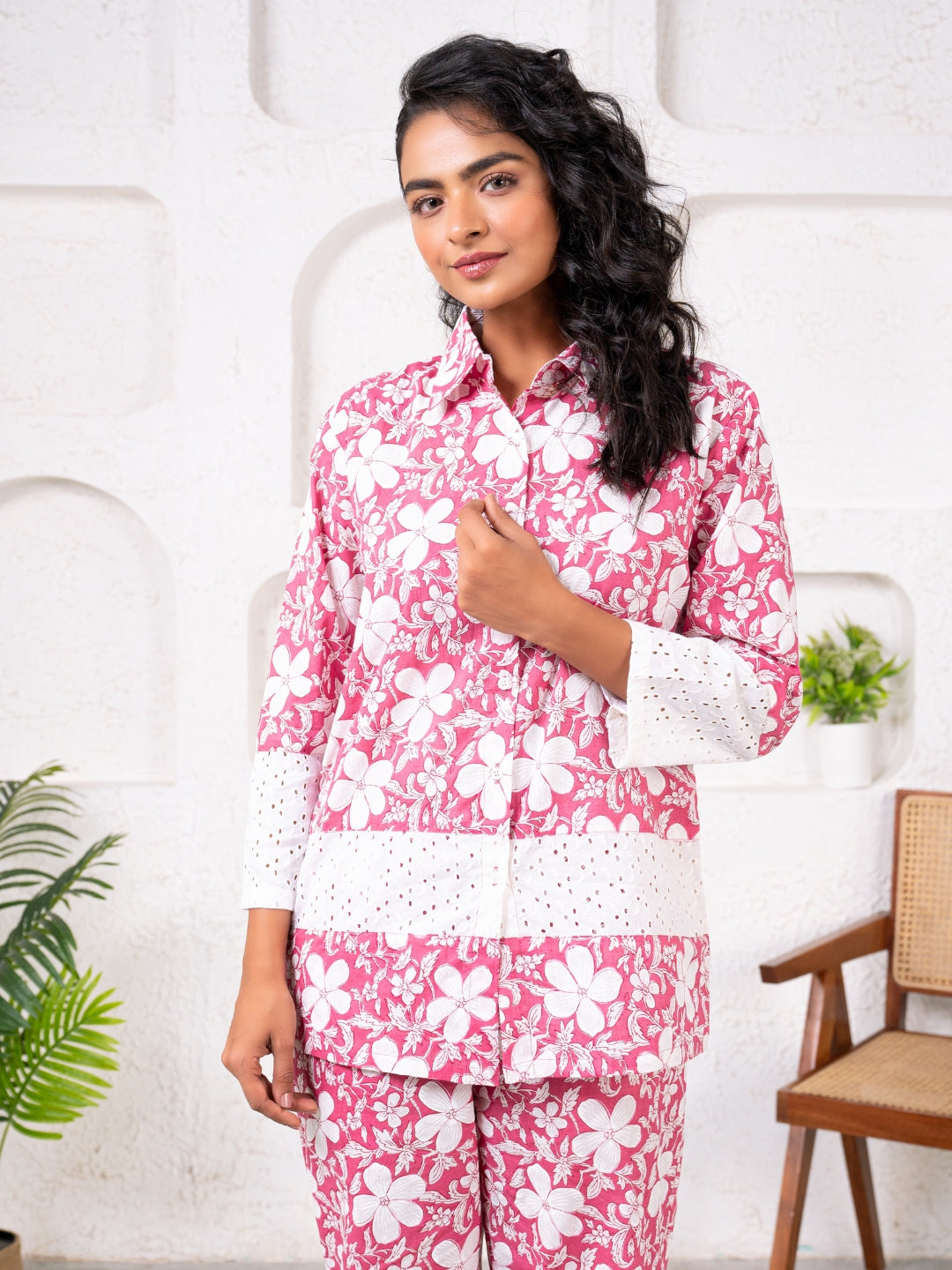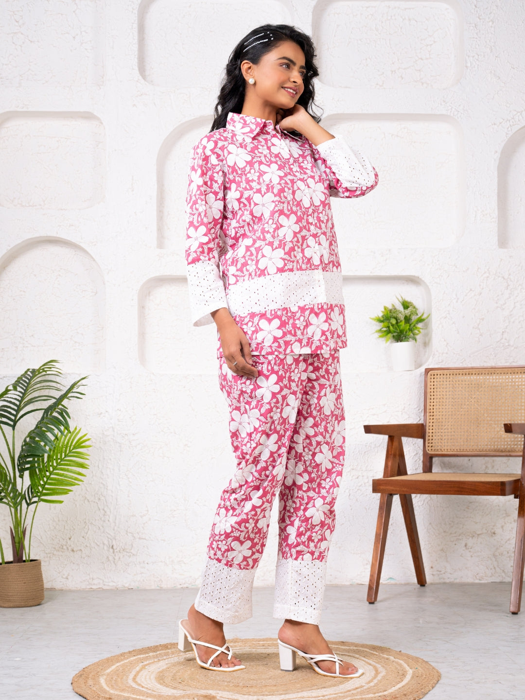 About Product - The Pink Cotton Printed With Shiffli Detailing Co-Ord Set will effortlessly complement a wide range of your casual outings. Available in XS to XL sizes. The perfect outfit you can ever find on the Internet.