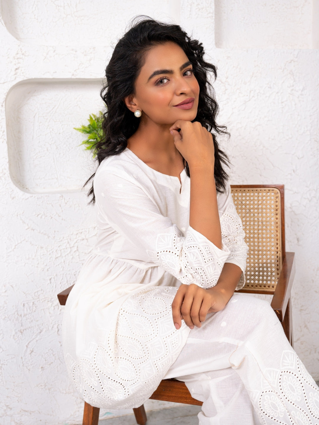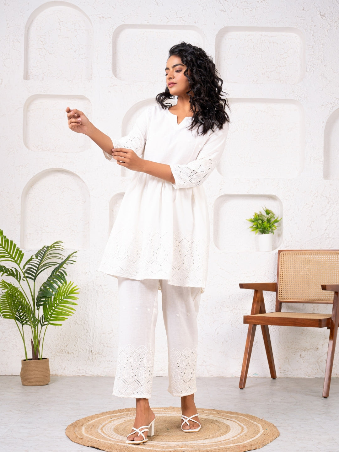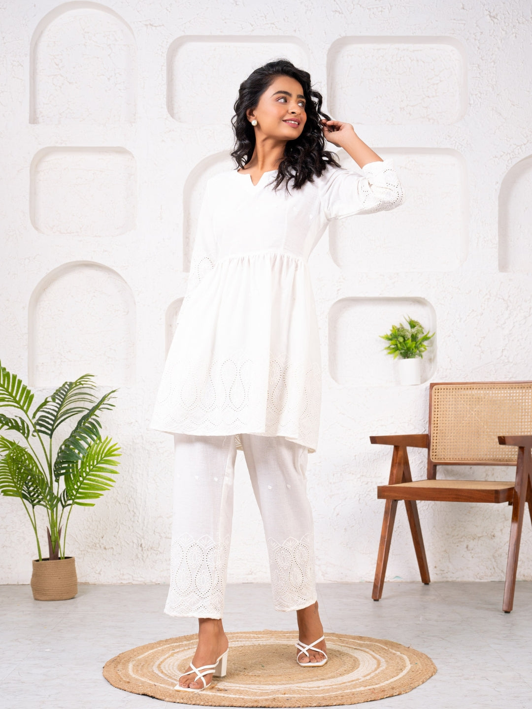 About Product - The Cotton Shiffli Ombre Off-white Co-Ord Set will effortlessly complement a wide range of your casual outings. Available in XS to XL sizes. The perfect outfit you can ever find on the Internet.