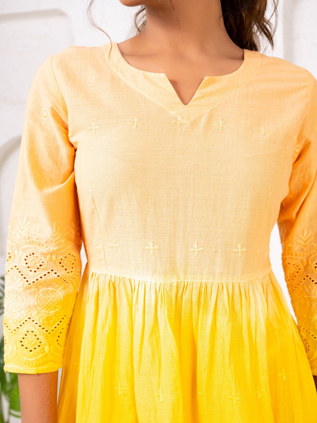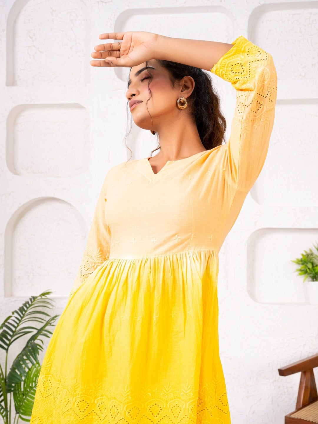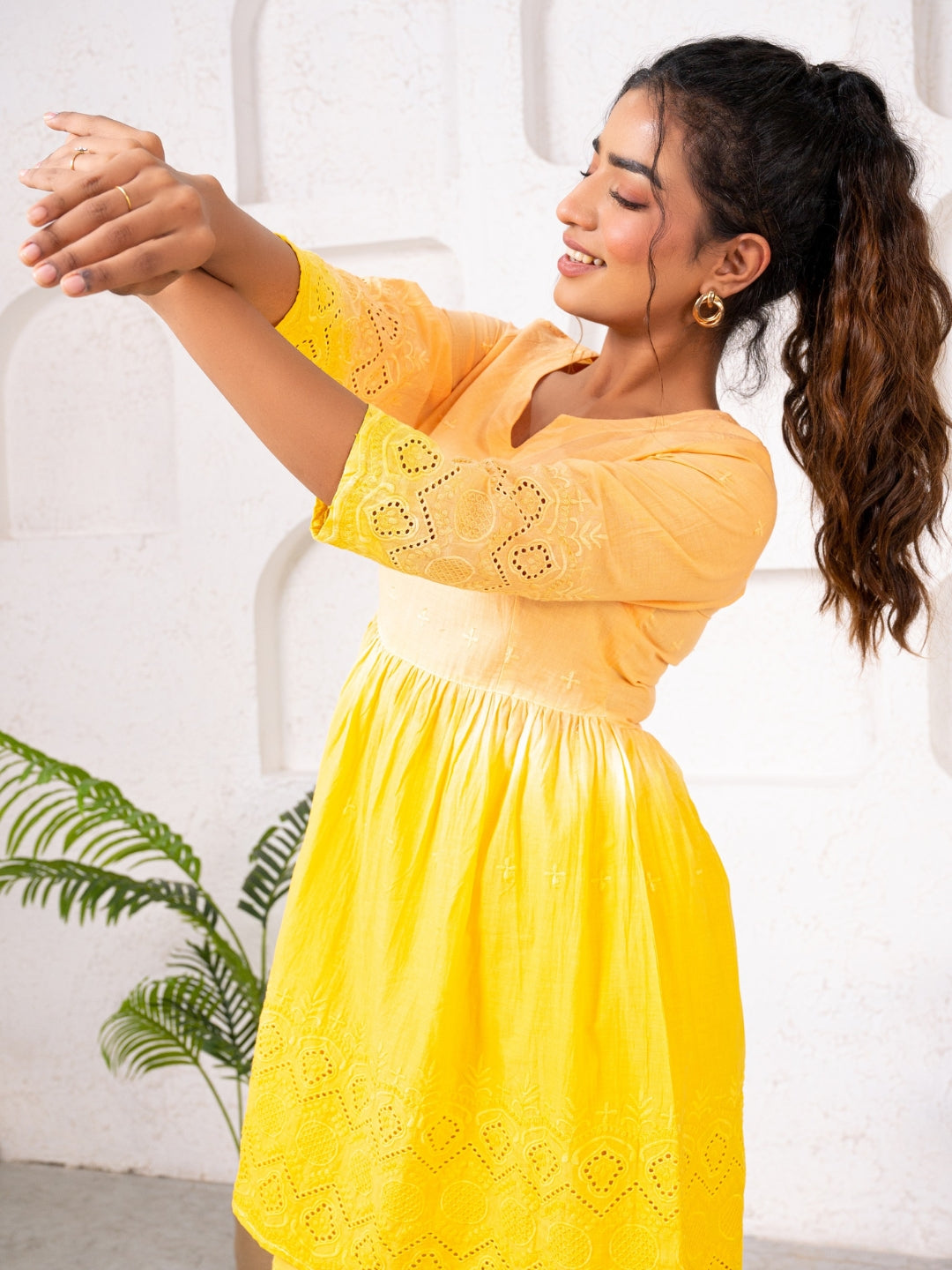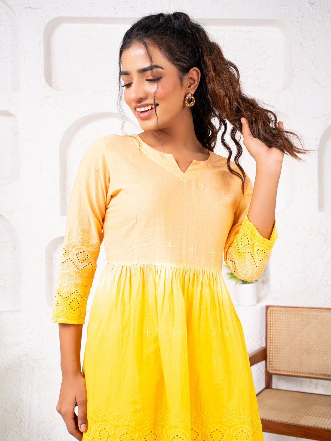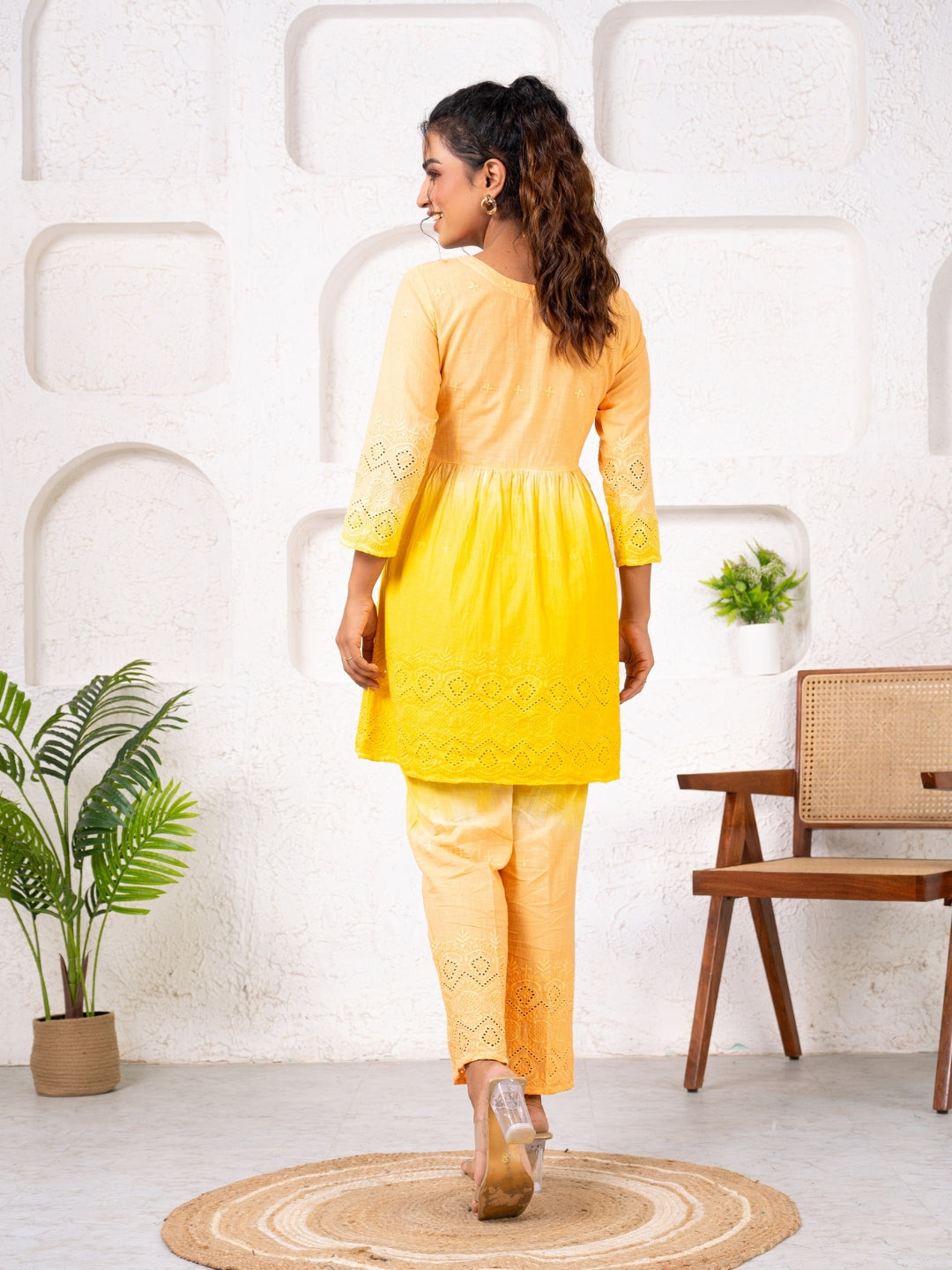 About Product - The Cotton Shiffli Ombre Yellow Co-Ord Set will effortlessly complement a wide range of your casual outings. Available in XS to XL sizes. The perfect outfit you can ever find on the Internet.