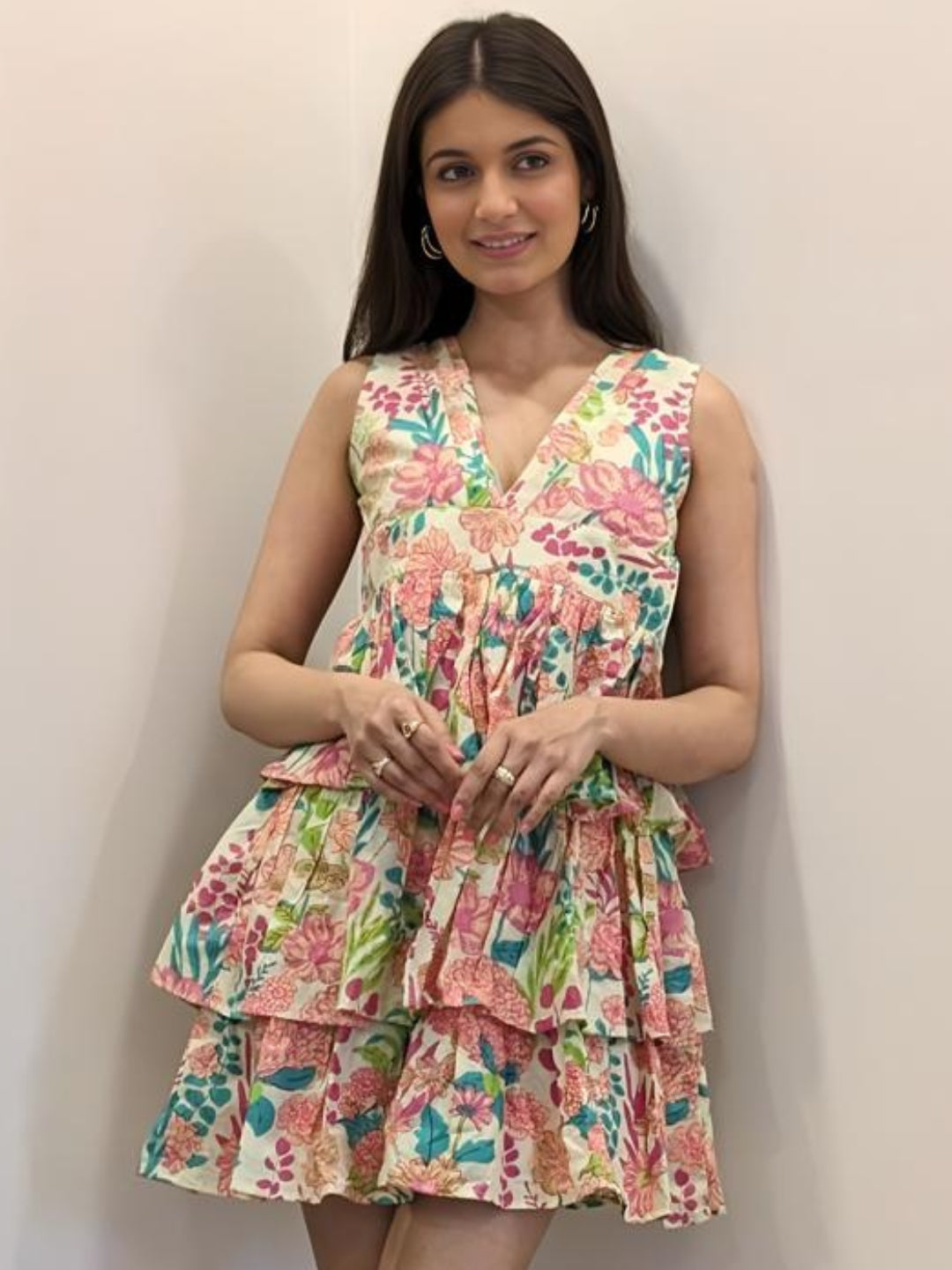 About Product - The Cream Pure Cotton Printed Short Frill Dress will effortlessly complement a wide range of your casual outings. Available in XS to XL sizes. The perfect outfit you can ever find on the Internet.