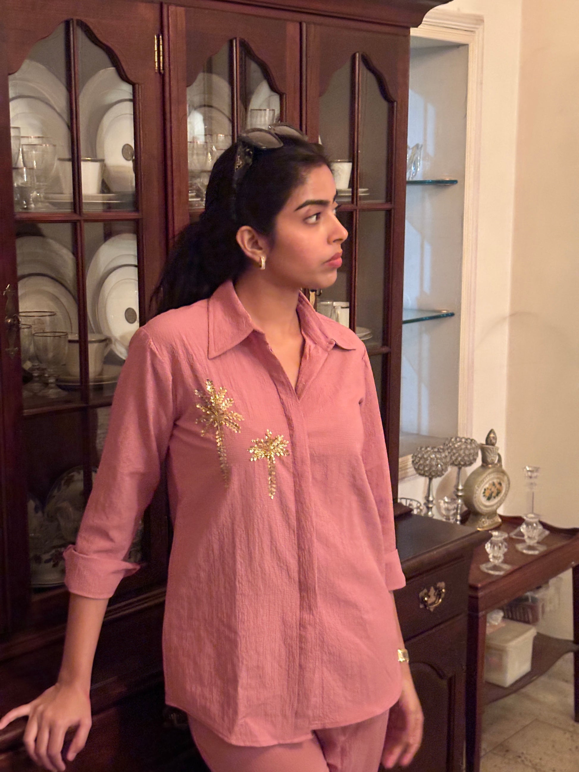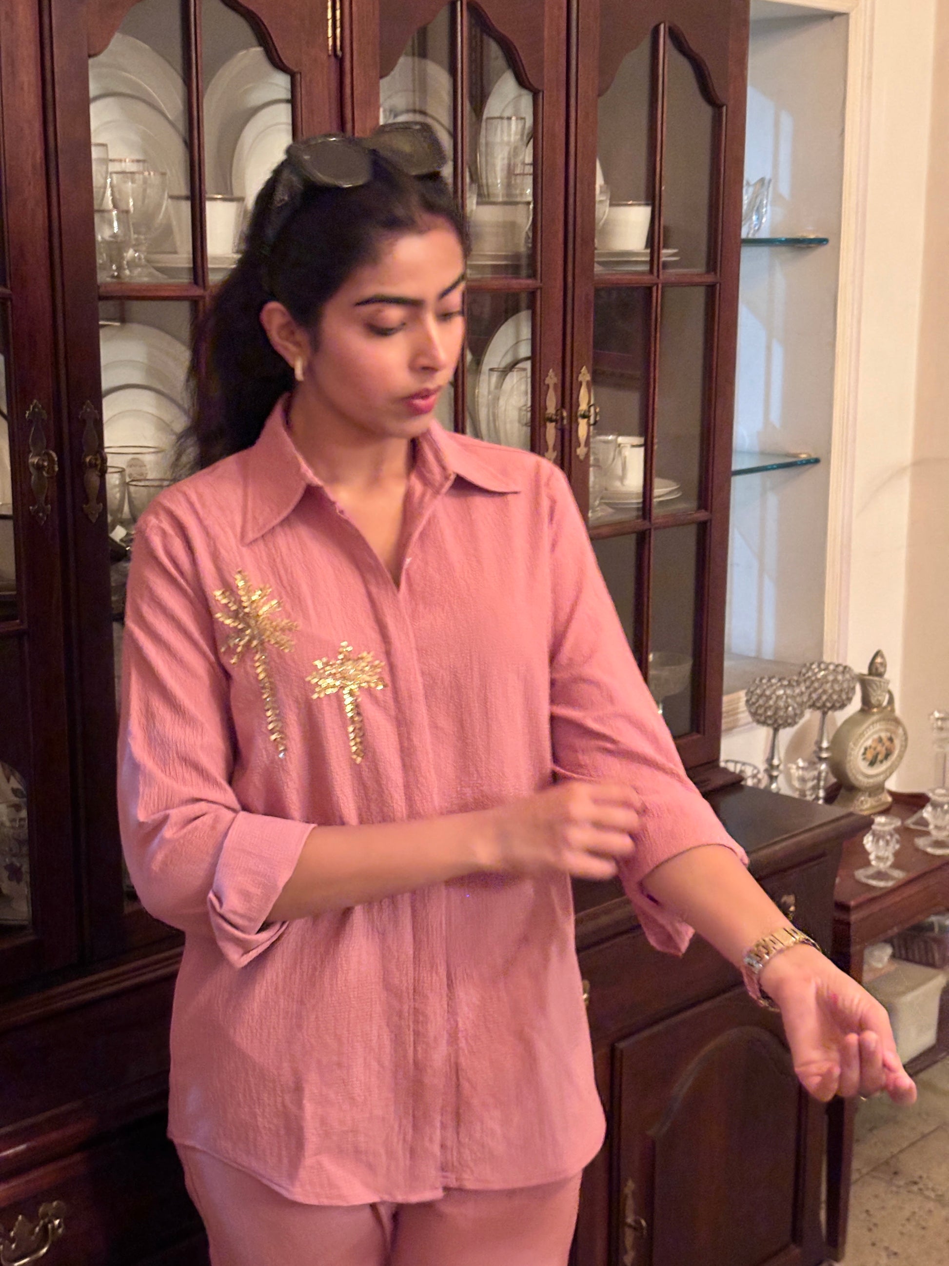 Italian Crepe Pink Palm Tree Co-Ord Set