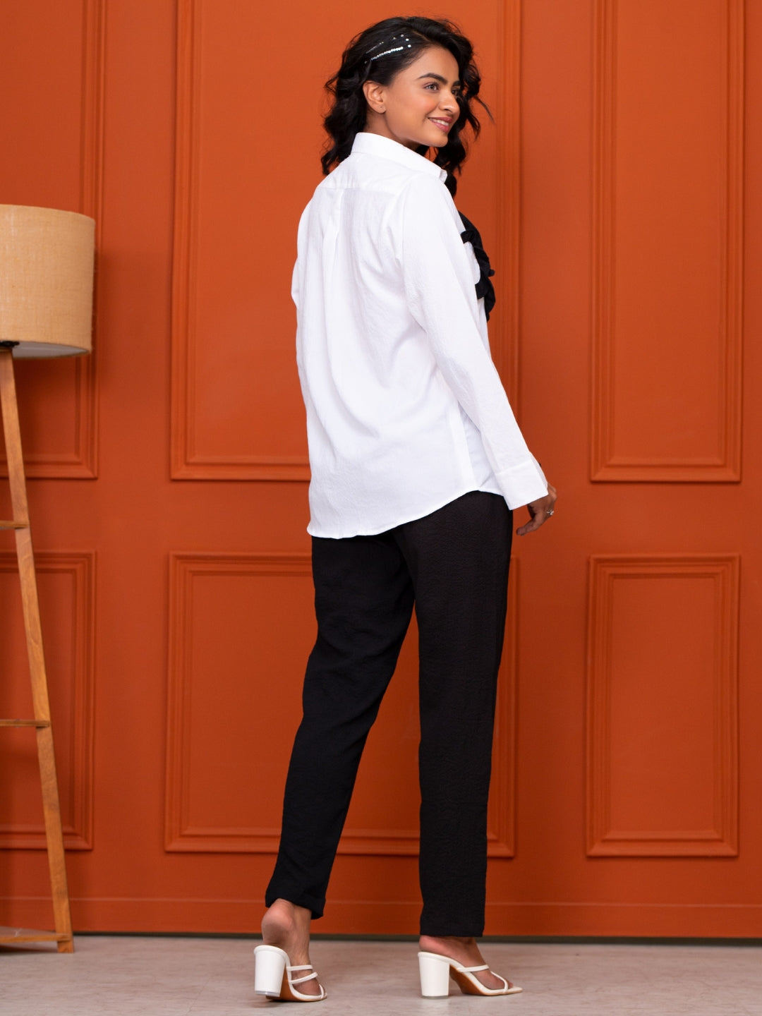 About Product - The Italian Crepe White With Frills Co-Ord Set will effortlessly complement a wide range of your casual outings. Available in XS to XL sizes. The perfect outfit you can ever find on the Internet.