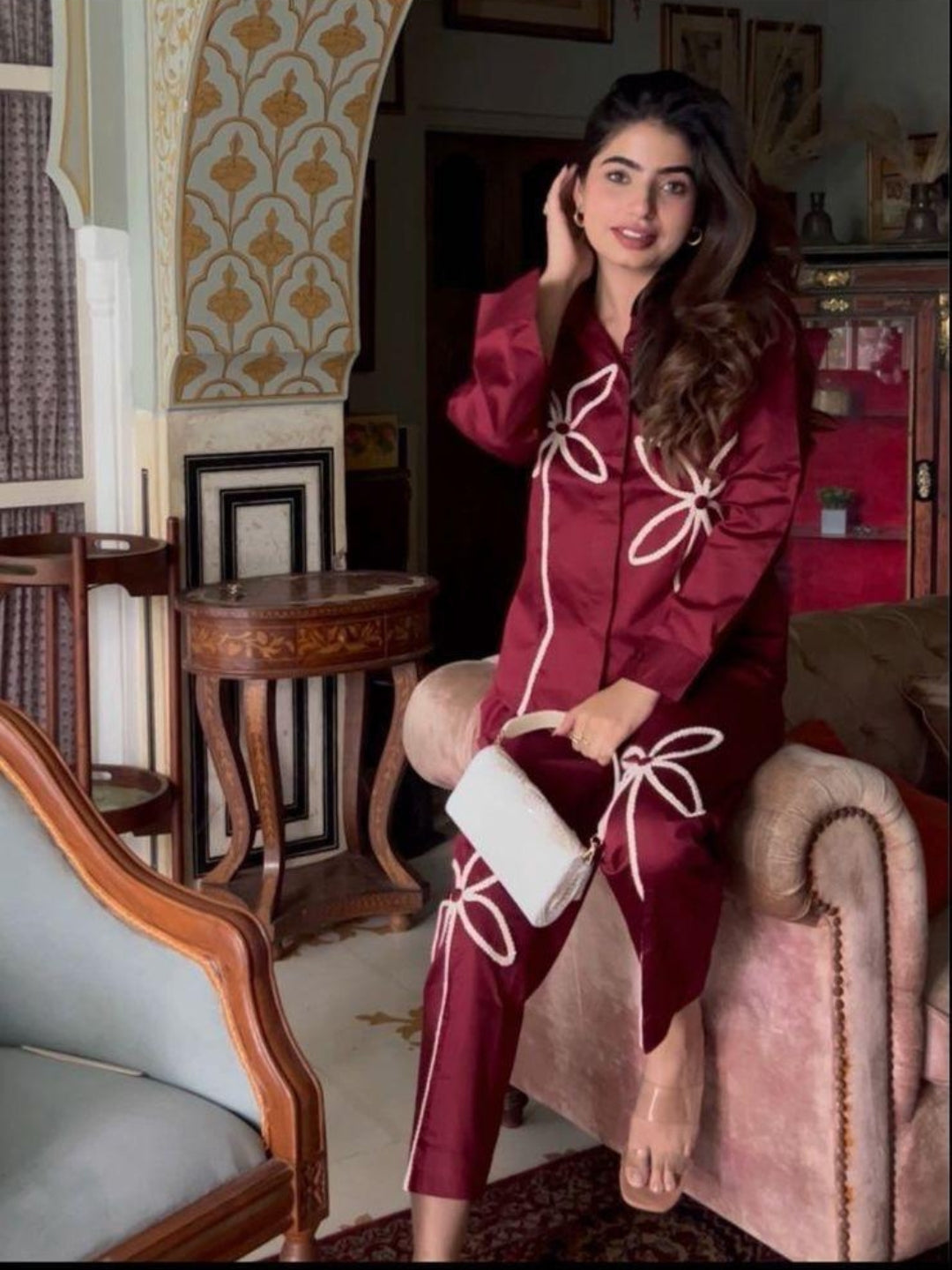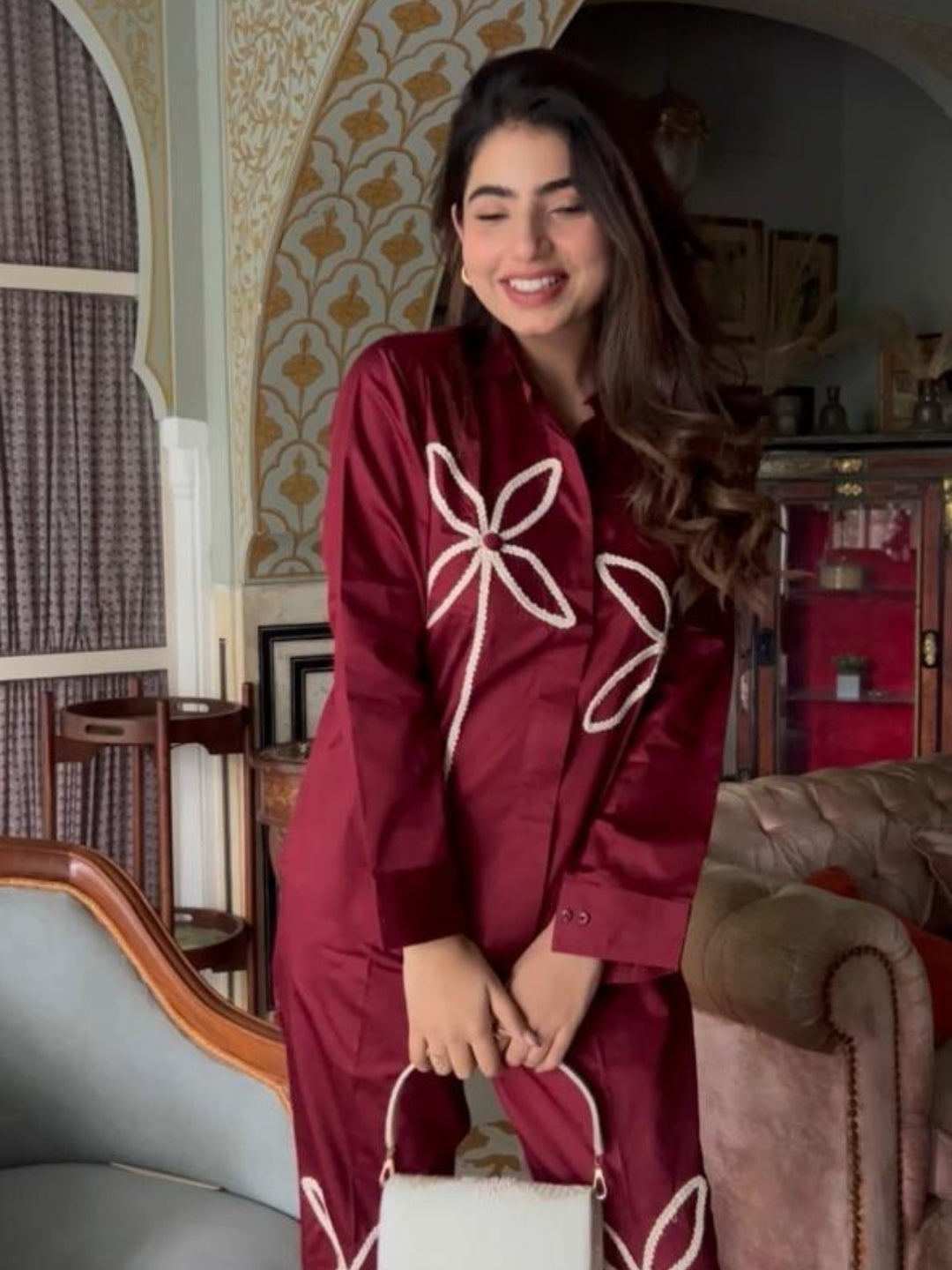 About Product - The Maroon Italian Cotton Co-ord Set With Lace detaling will effortlessly complement a wide range of your casual outings. Available in XS to XL sizes. The perfect outfit you can ever find on the Internet.
