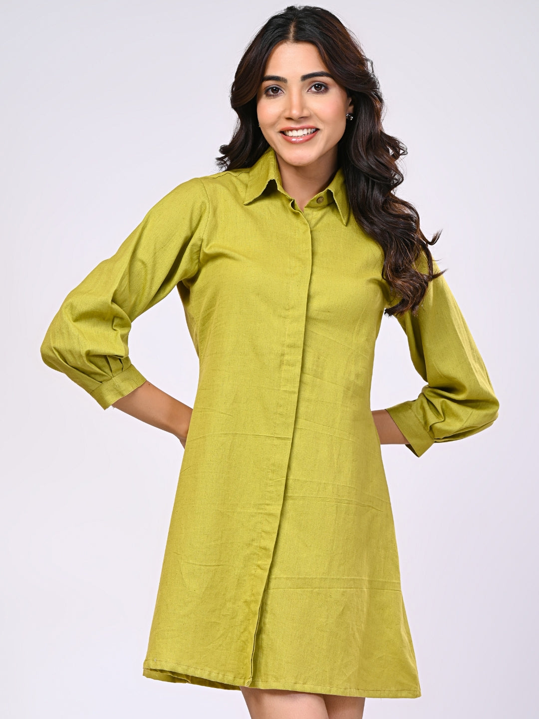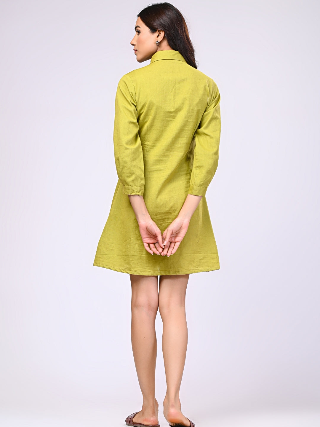 About Product - The Cotton Linen Green Short Dress will effortlessly complement a wide range of your casual outings. Available in XS to XL sizes. The perfect outfit you can ever find on the Internet.