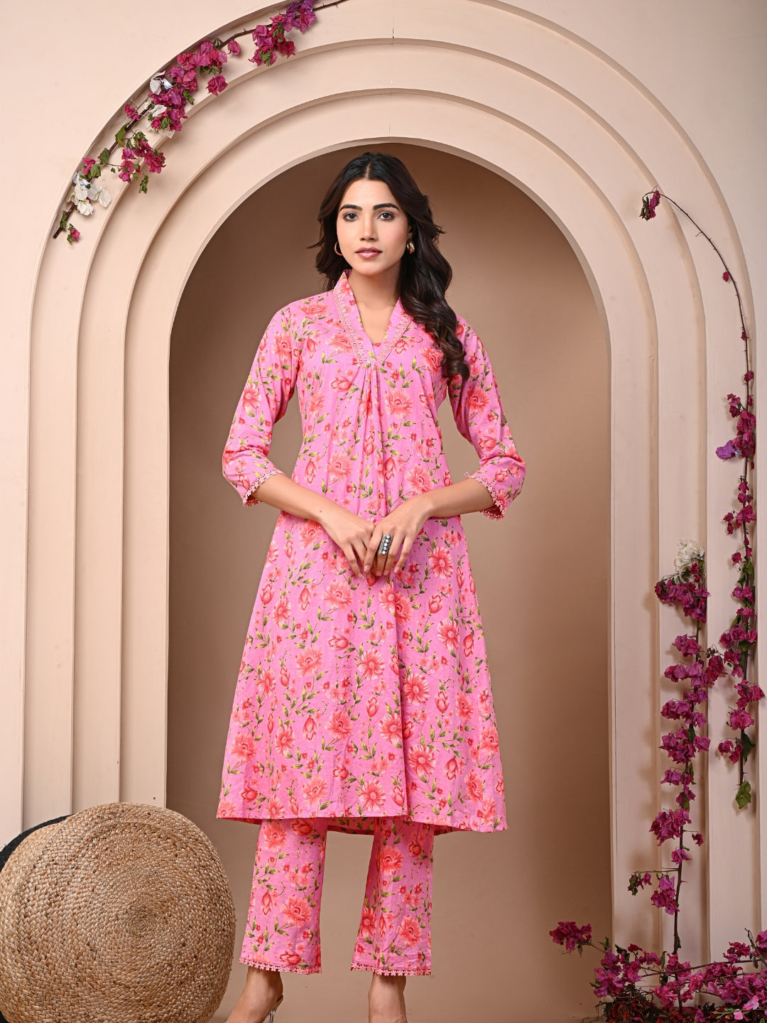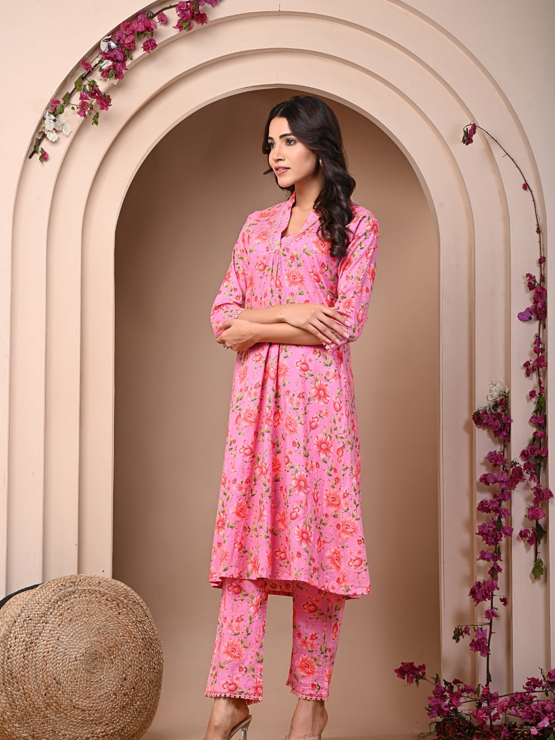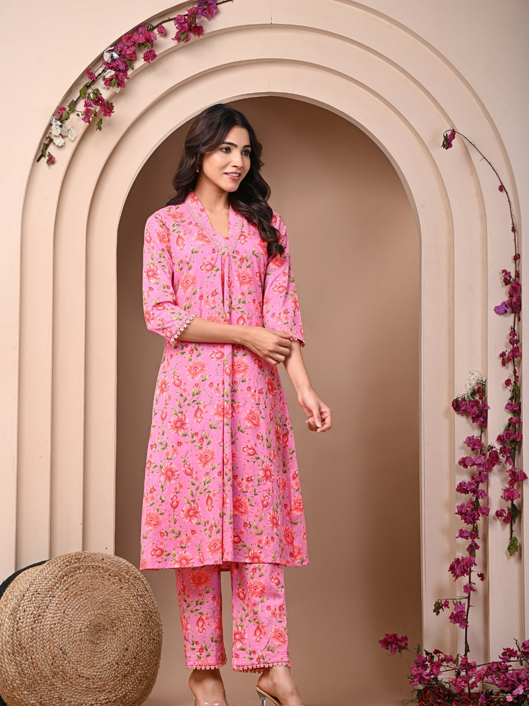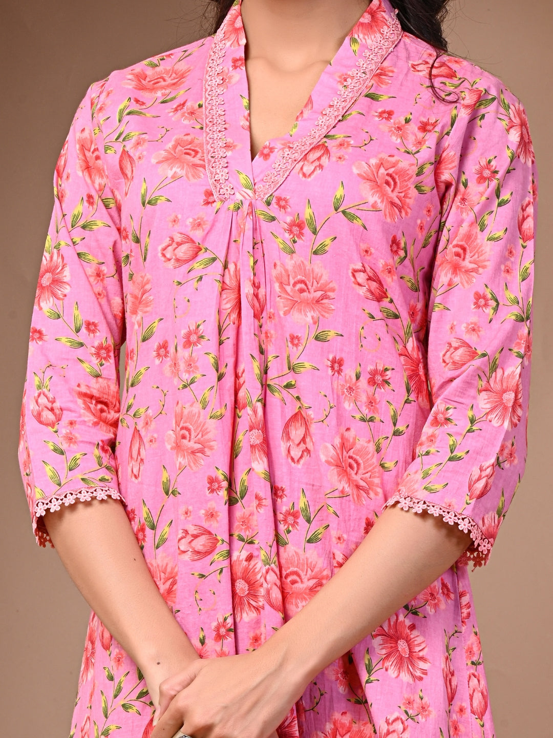 About Product - The Pure Cotton Printed Mauve Pink Kurti & Pant Set will effortlessly complement a wide range of your casual outings. Available in XS to XL sizes. The perfect outfit you can ever find on the Internet.