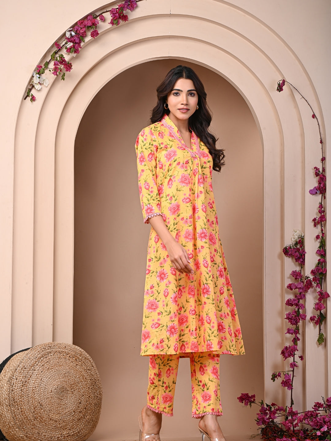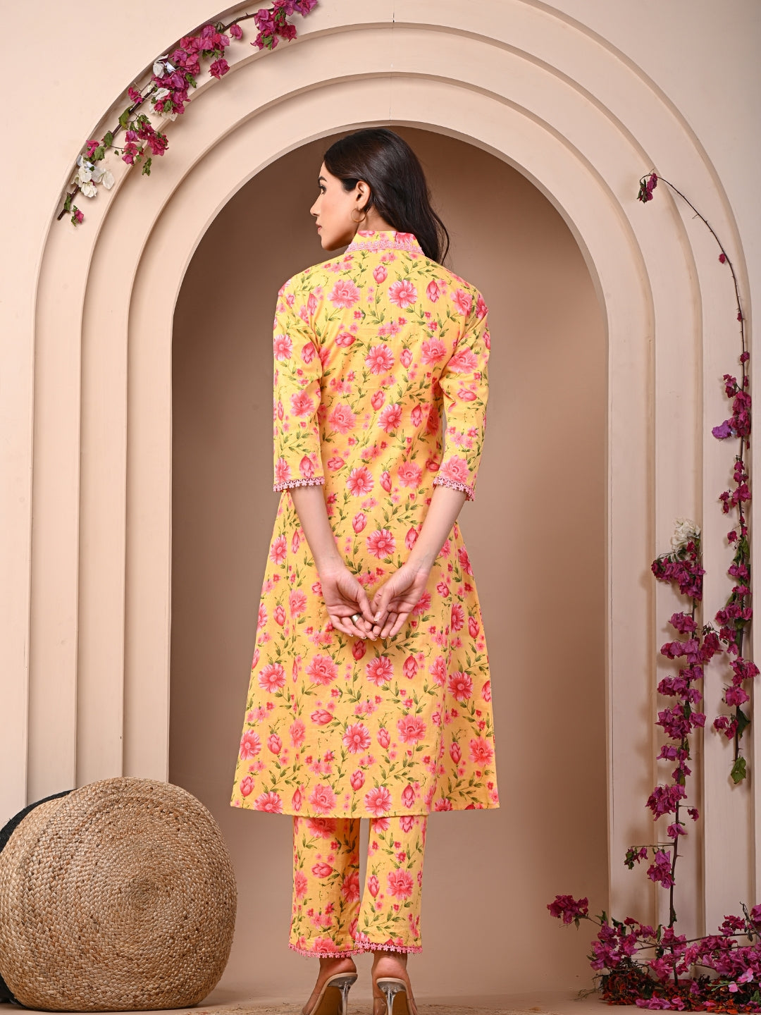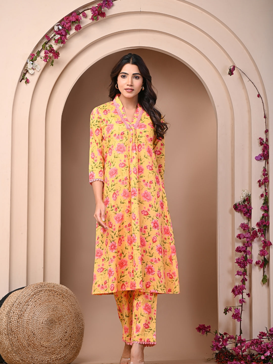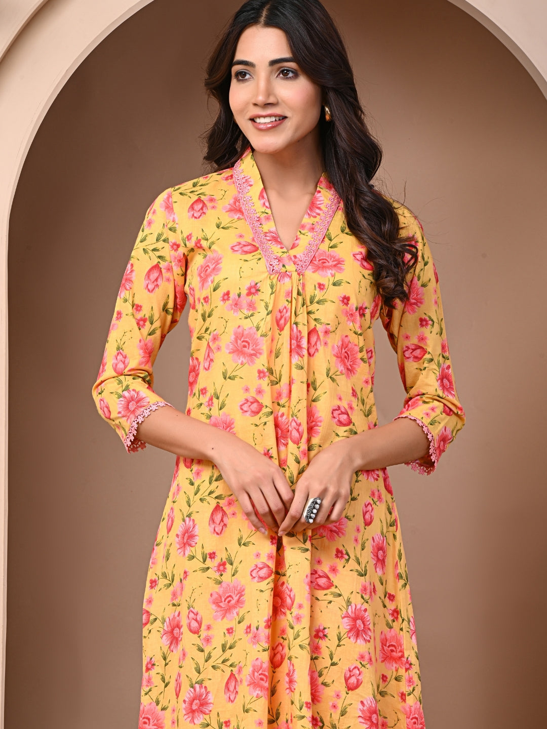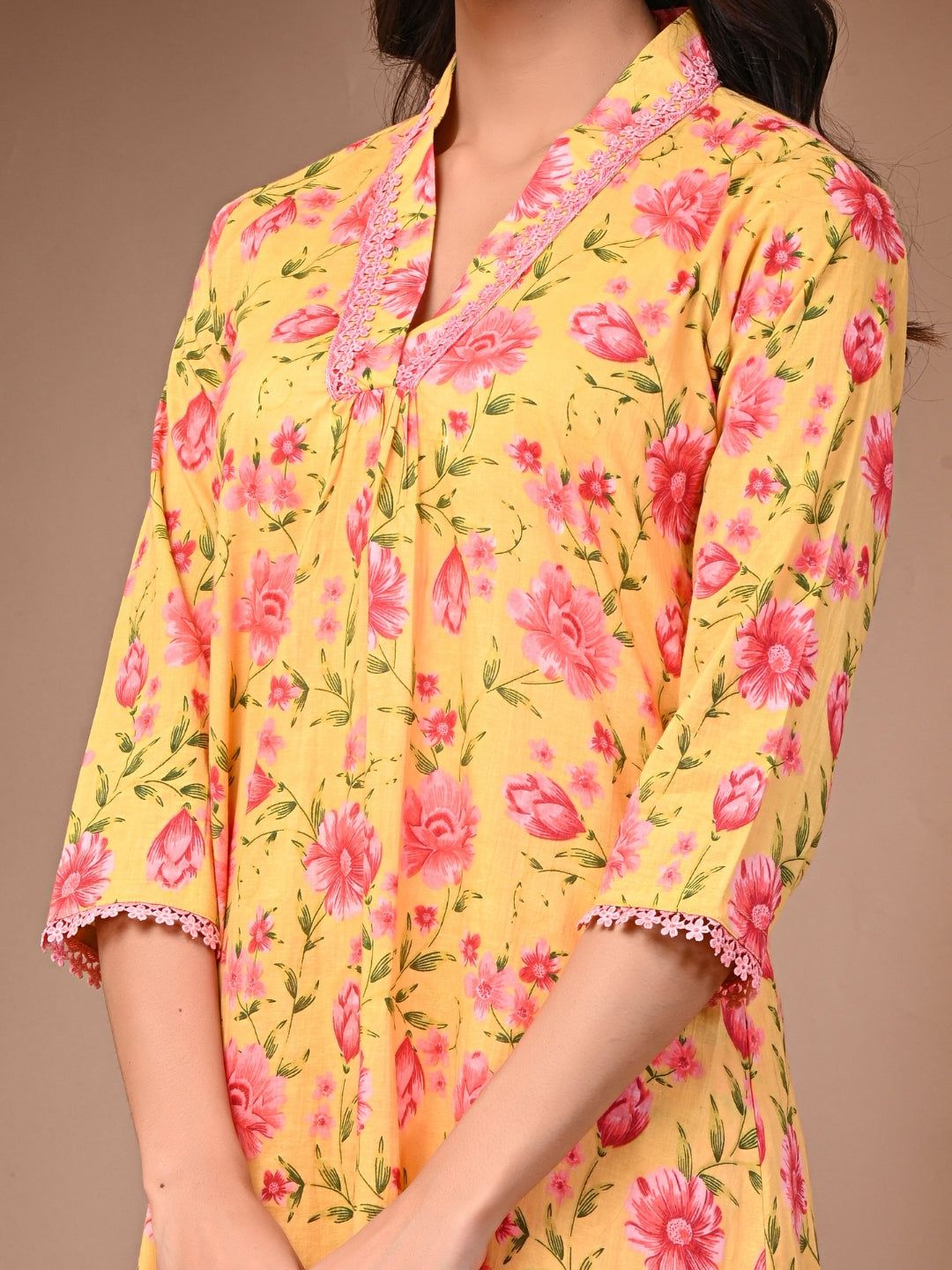 About Product - The Pure Cotton Printed Yellow Kurti & Pant Set will effortlessly complement a wide range of your casual outings. Available in XS to XL sizes. The perfect outfit you can ever find on the Internet.