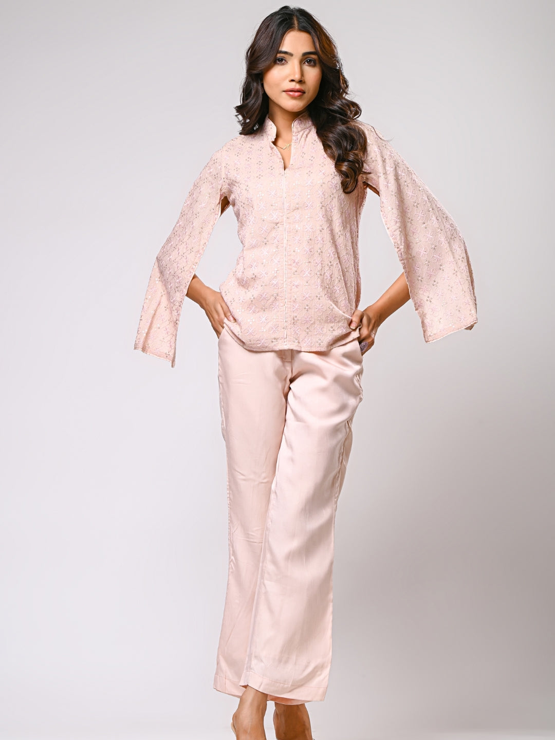 About Product - The Rose Pink Cotton Shiffli Open Sleeves Co-ord Set will effortlessly complement a wide range of your casual outings. Available in XS to XXL sizes. The perfect outfit you can ever find on the Internet.