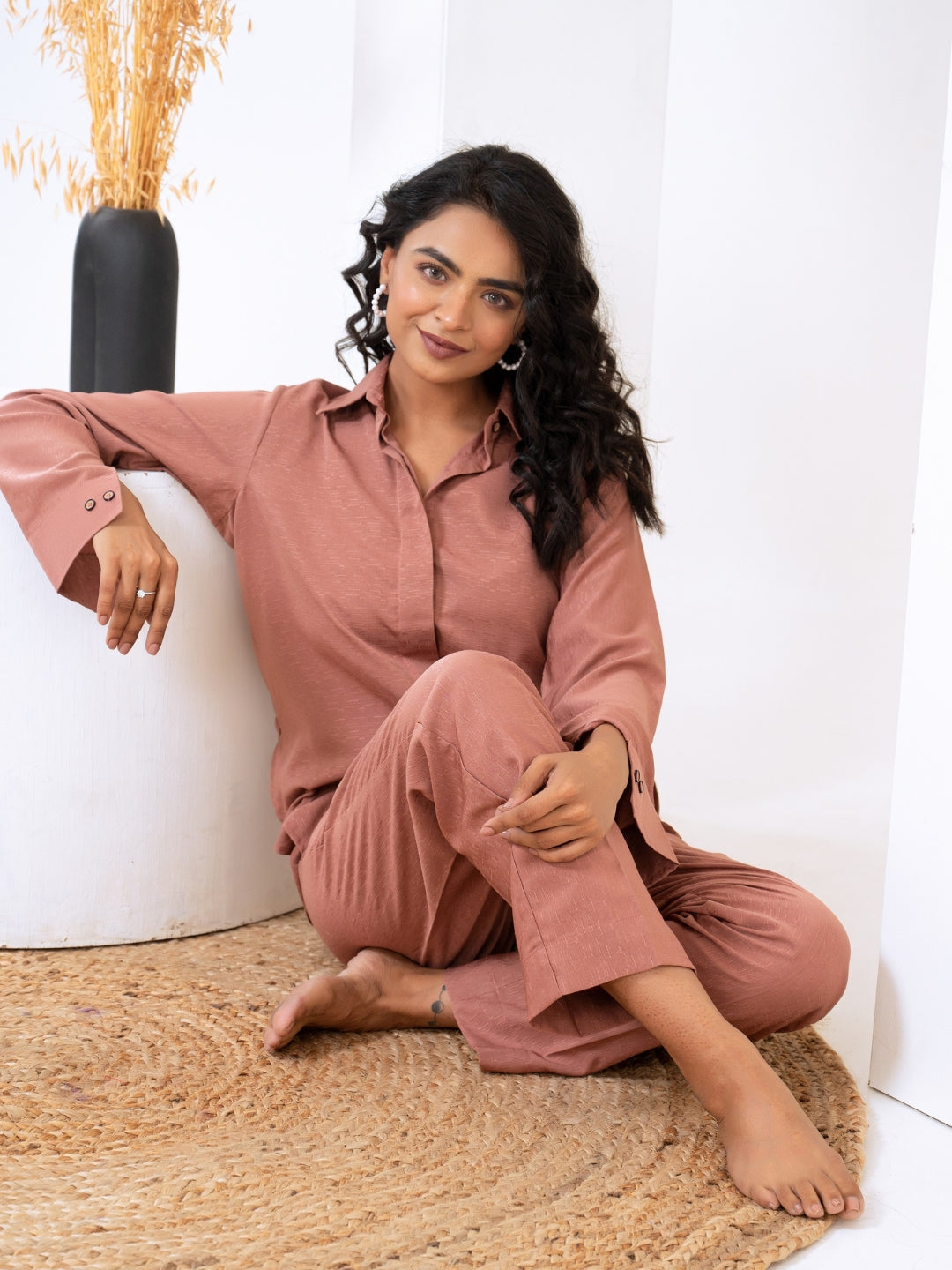 About Product - The Silk Jacquard Rust Co-Ord Set will effortlessly complement a wide range of your casual outings. Available in XS to XL sizes. The perfect outfit you can ever find on the Internet.