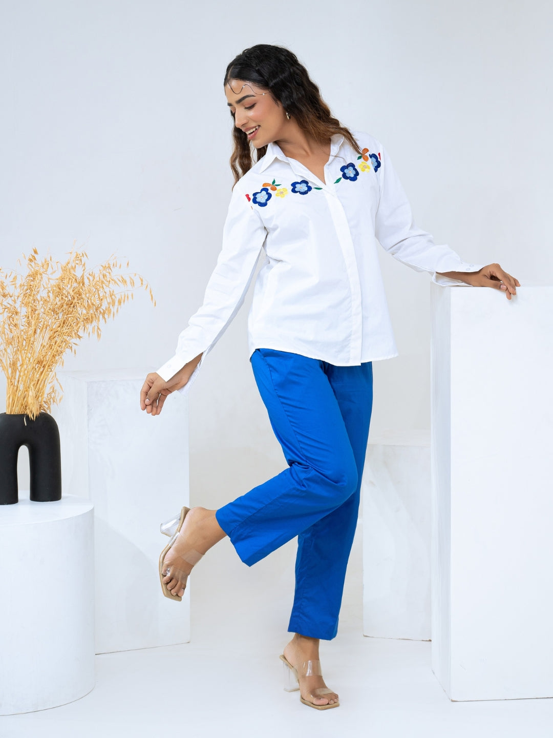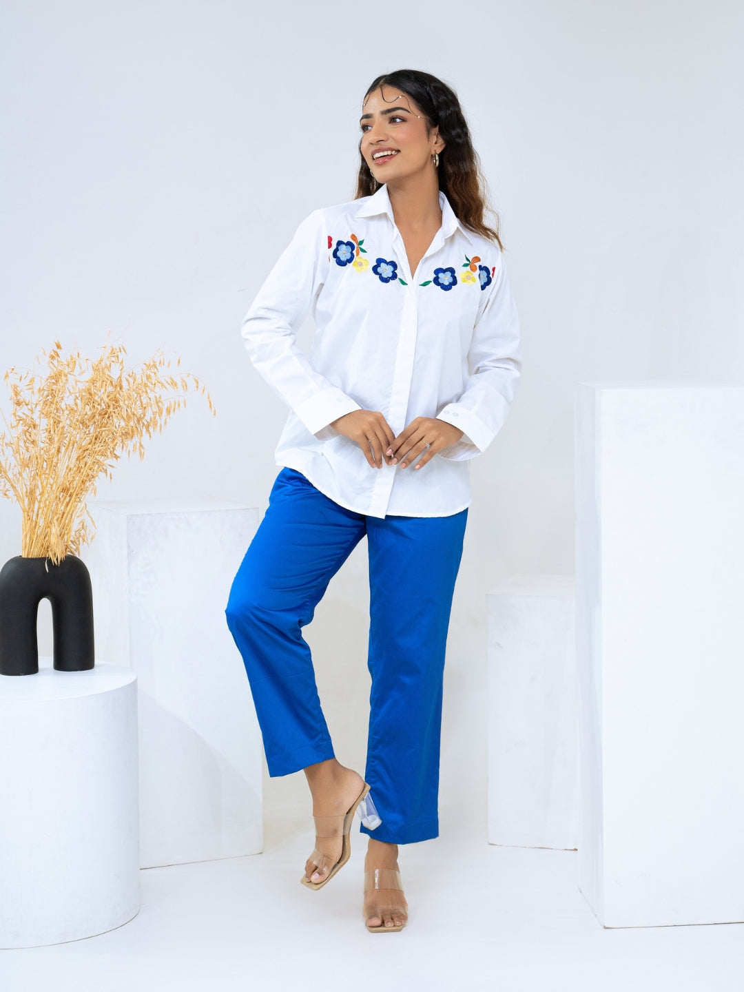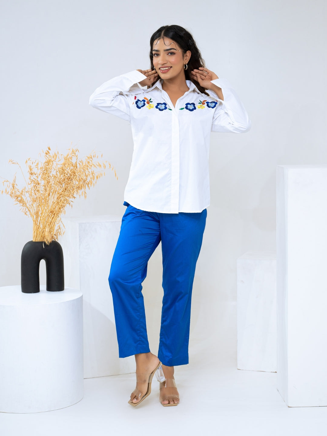 About Product - The White Floral Detailing Cotton Poplin Co-Ord Set will effortlessly complement a wide range of your casual outings. Available in XS to XL sizes. The perfect outfit you can ever find on the Internet.