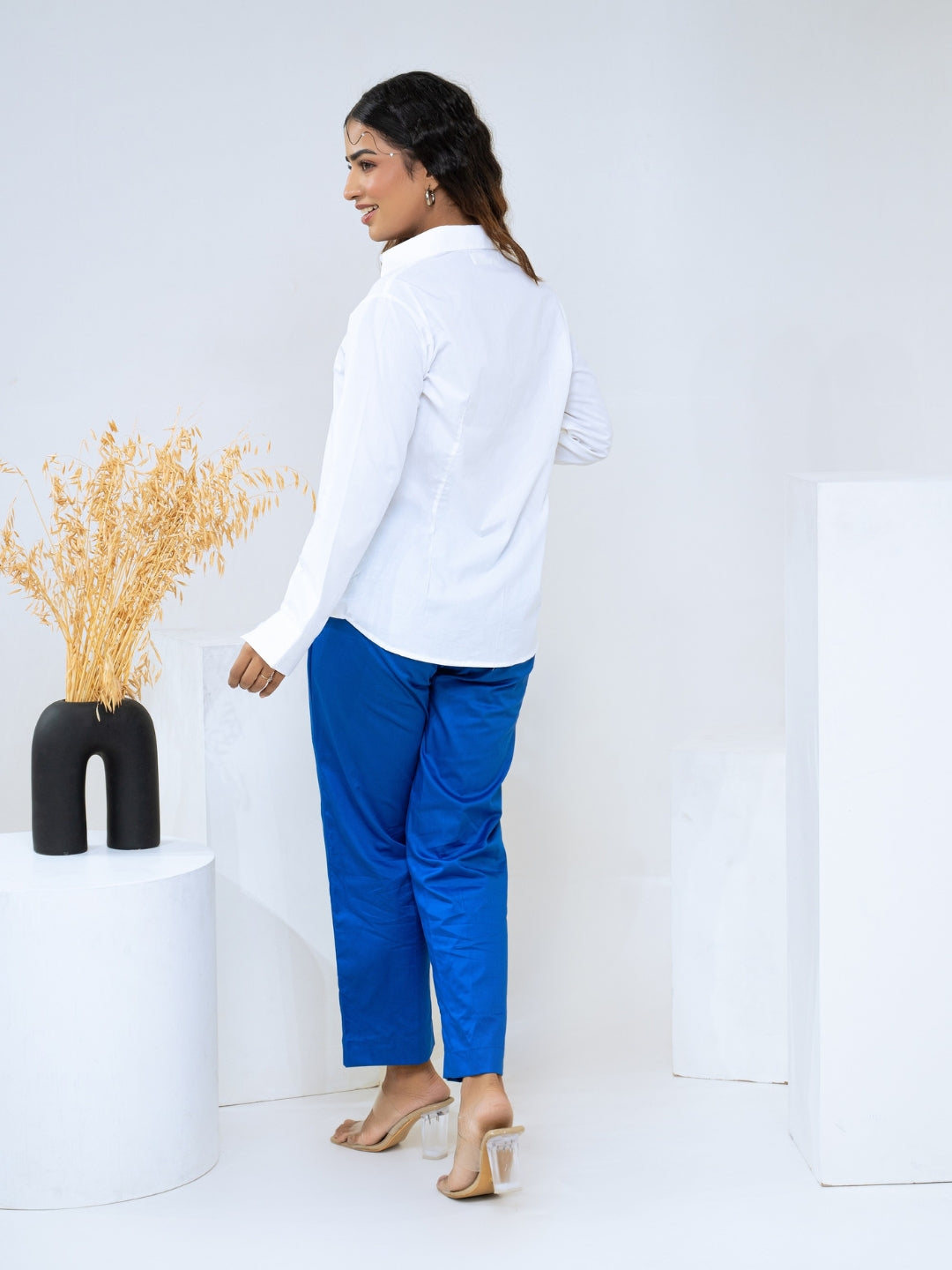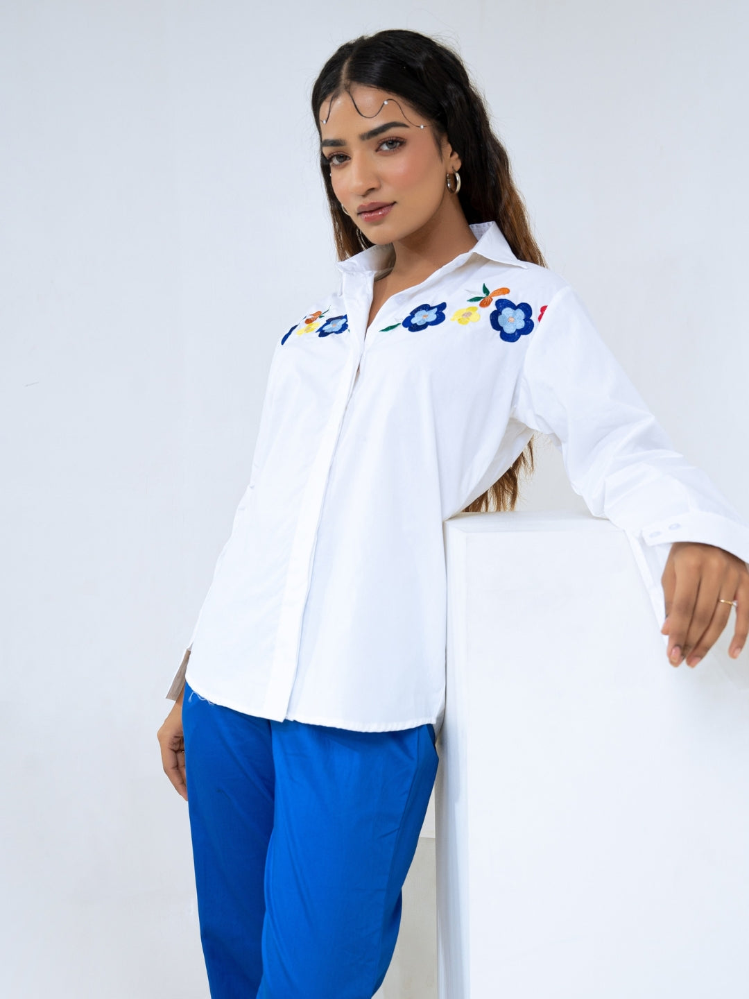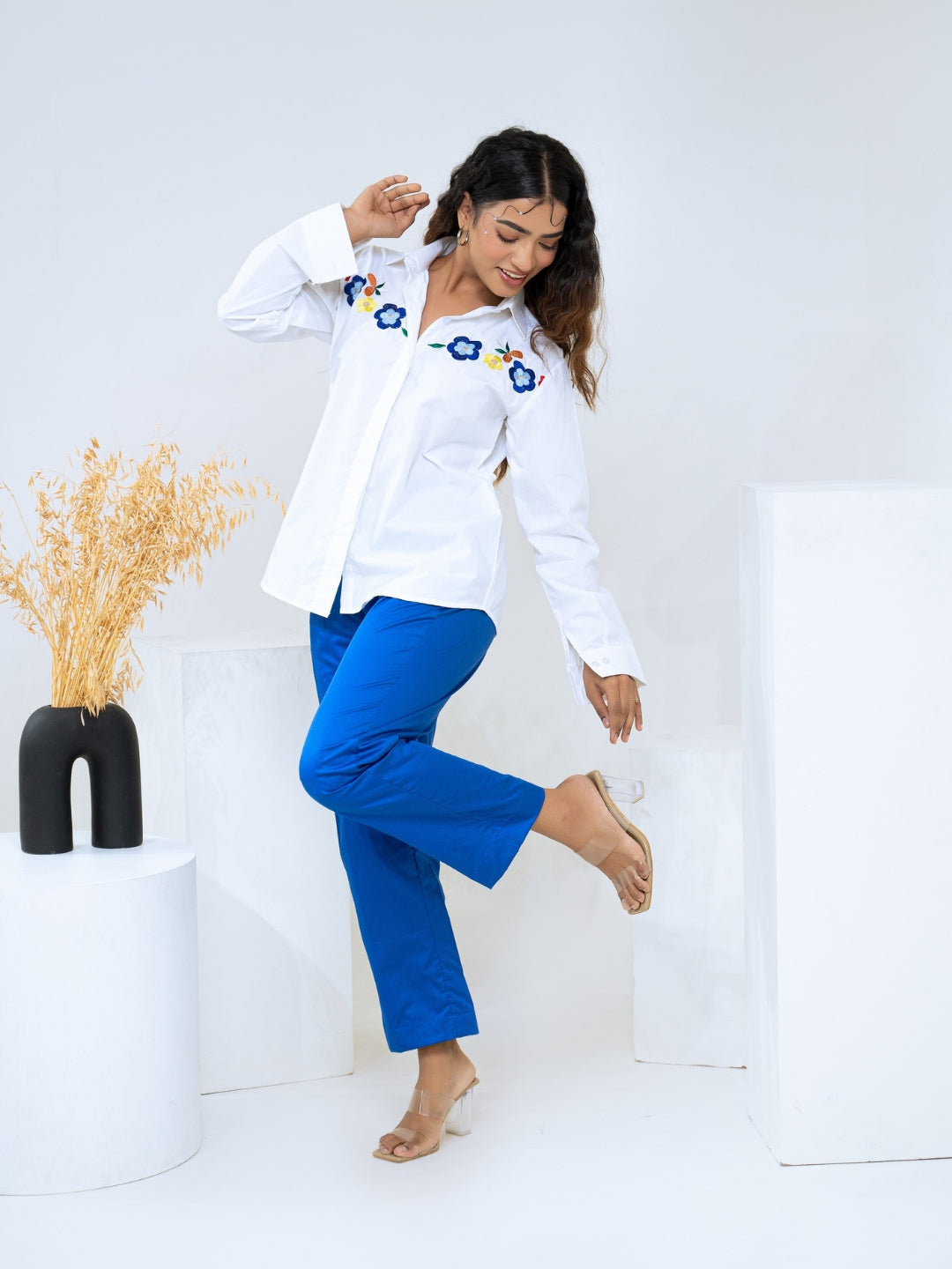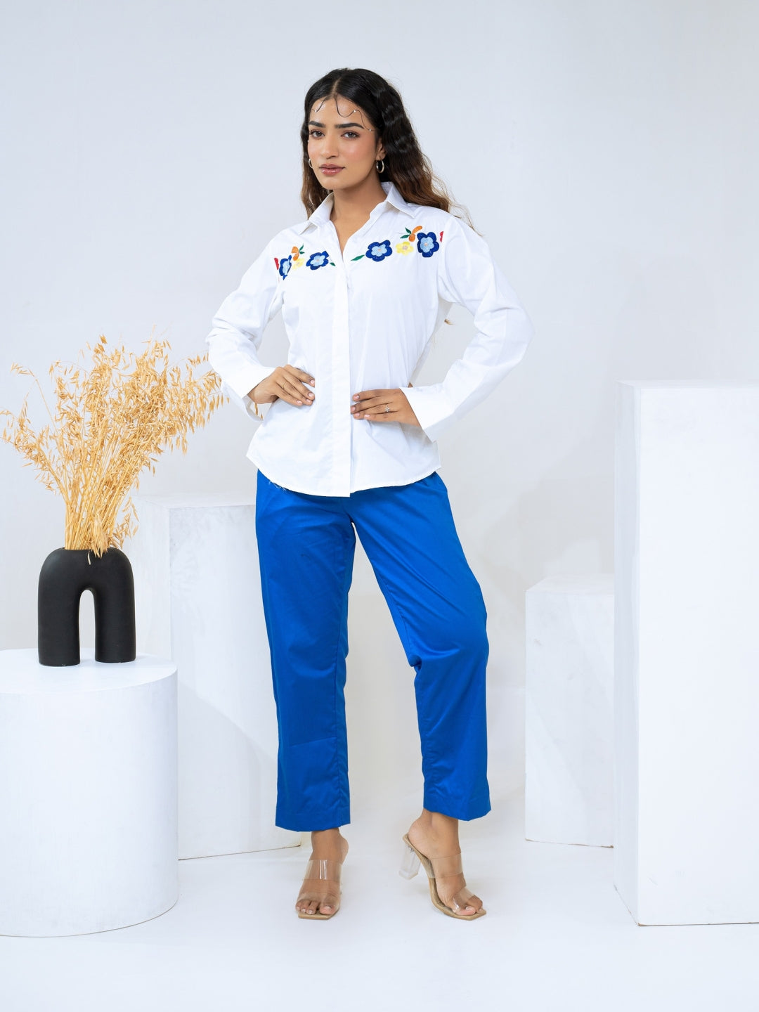 About Product - The White Floral Detailing Cotton Poplin Co-Ord Set will effortlessly complement a wide range of your casual outings. Available in XS to XL sizes. The perfect outfit you can ever find on the Internet.